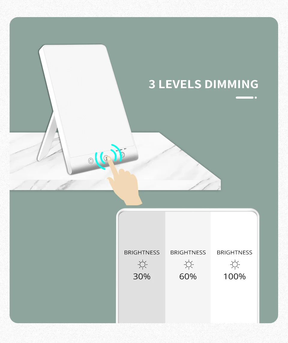 3 режима книга лампа Сезонное аффективное расстройство фототерапия грустная терапия лампа имитирующая естественный светодиодный светильник дневного света ACD лечение
