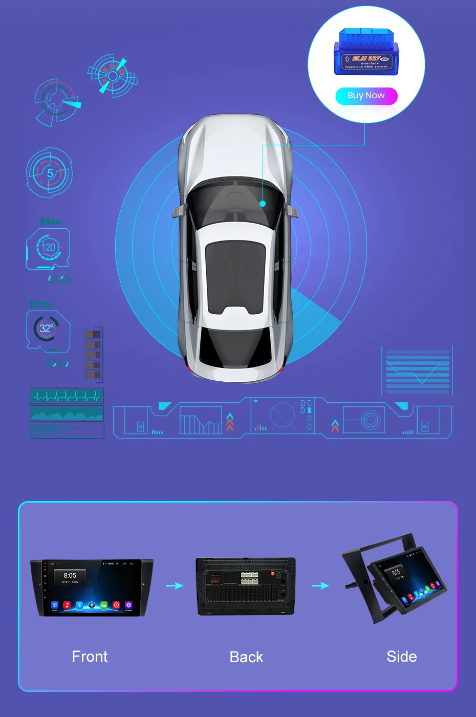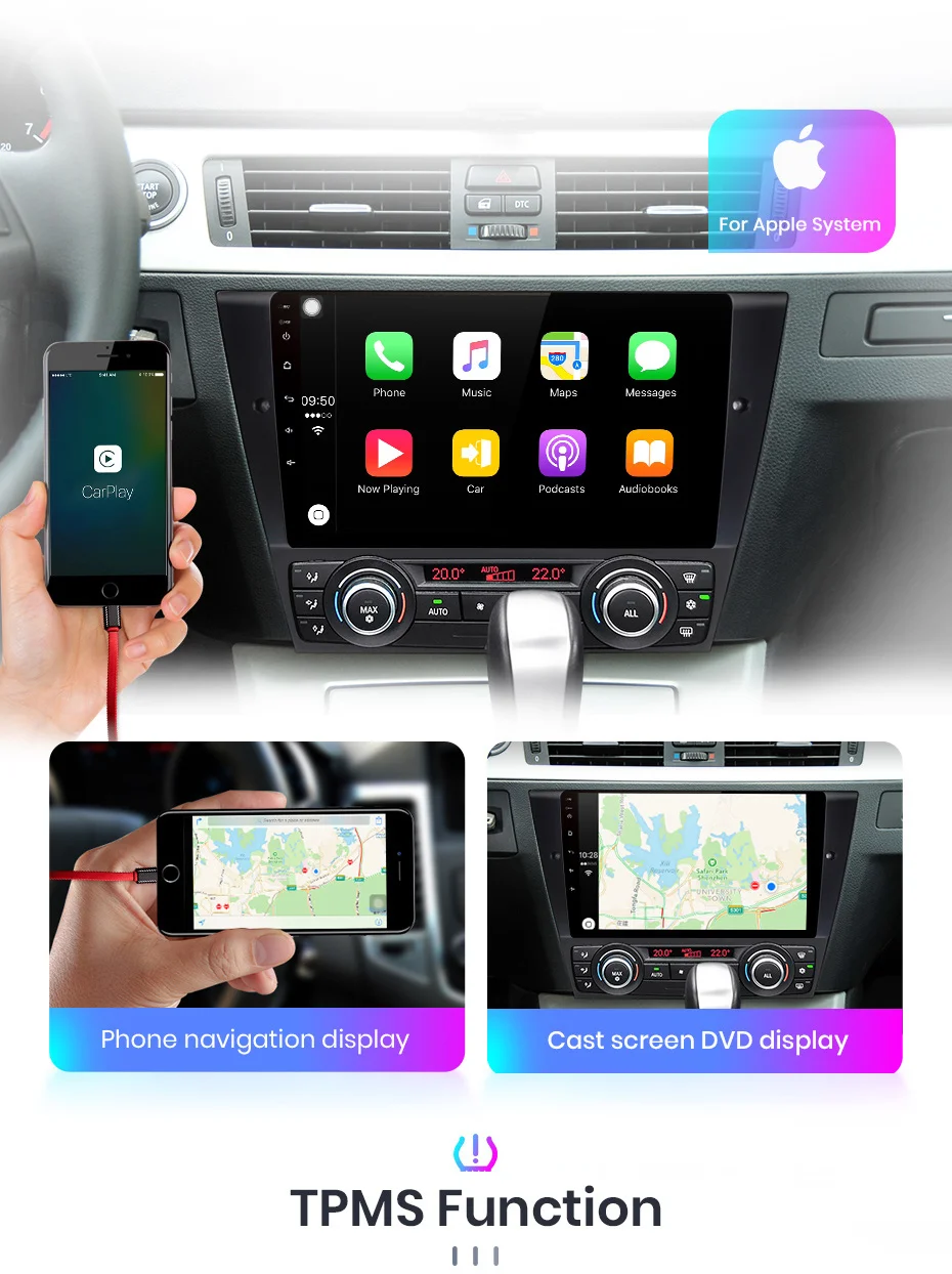 1. Для BMW E90 E91 E92 E93, после установки радио, он не может быть полностью параллельно центральной консоли автомобиля, будет выступ 1 см (для стиля после установки, пожалуйста, обратитесь к картинке).