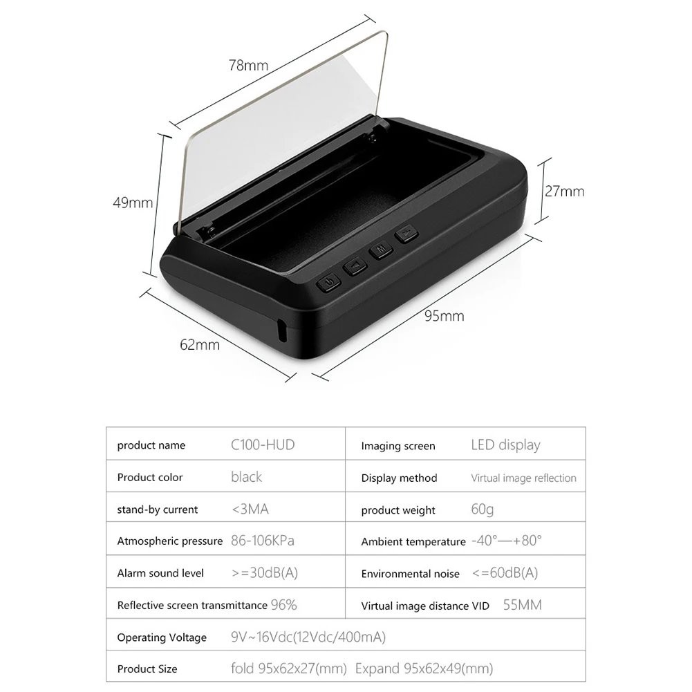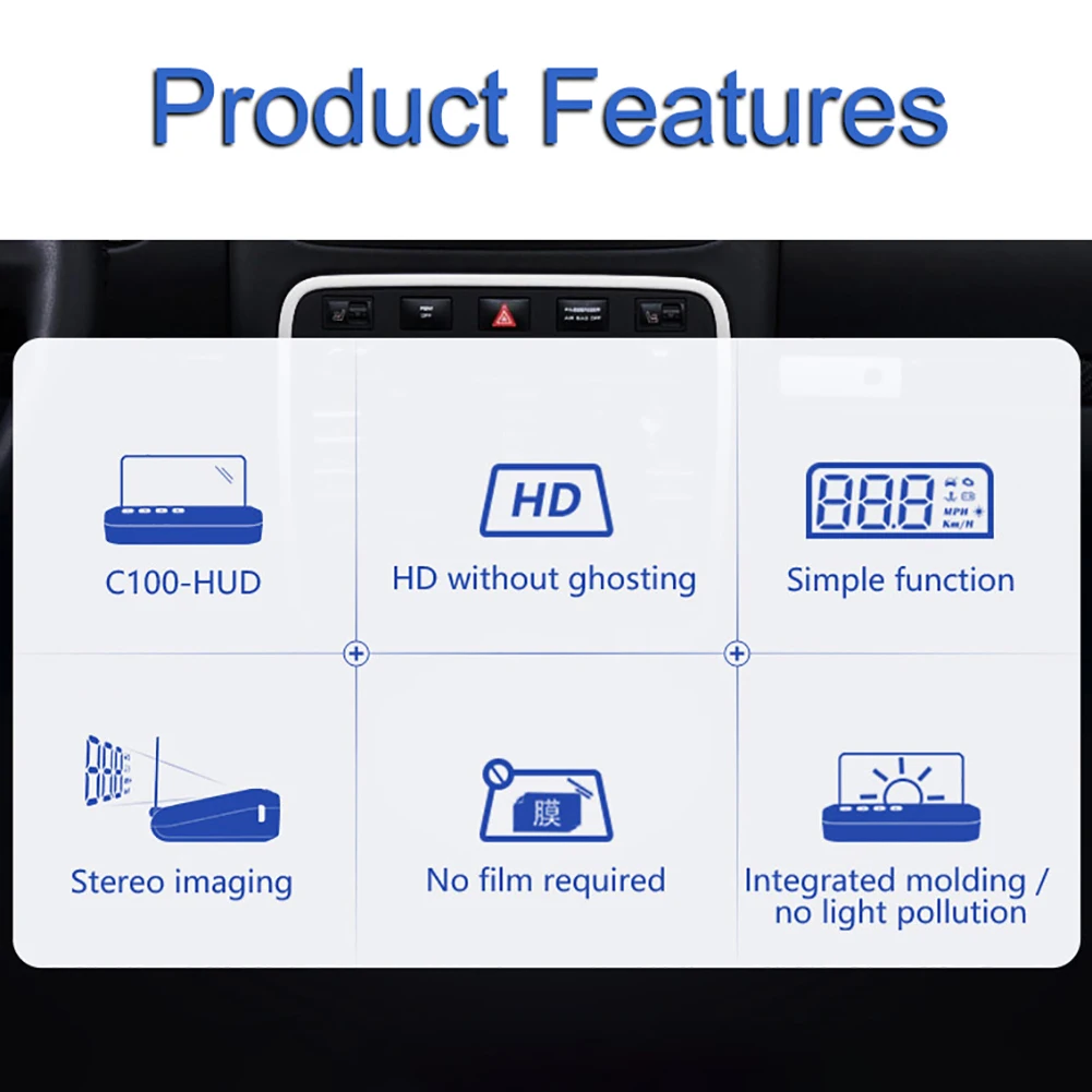 -Простота установки, нужно только подключить HUD к автомобильному OBD порту с помощью OBD кабеля, HUD будет отображаться при включении/выключении двигателя автомобиля.
