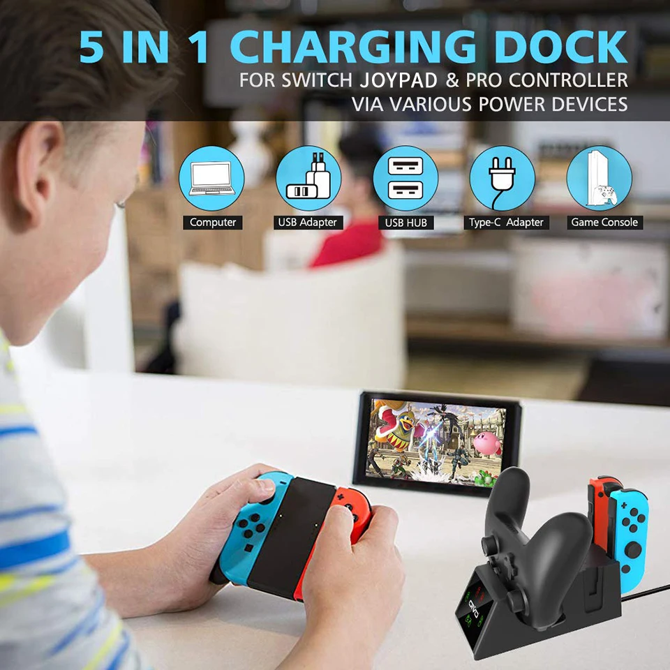 Специальная конструкция для Nintendo Switch: зарядная док-станция OIVO 5 в 1 поддерживает контроллер pro и четыре джойстика joy одновременно.