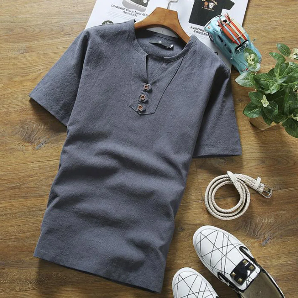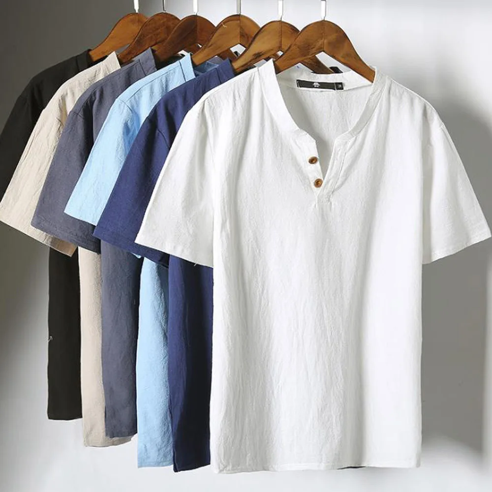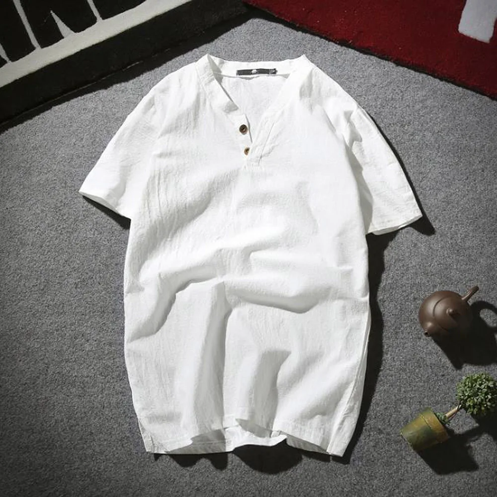 * Цвет: черный, белый, бежевый, серый, синий (как на фотографии) * Состояние: 100% новый бренд * Описание: Мужская льняная летняя Однотонная футболка большого размера с коротким рукавом, винтажные повседневные Мягкие базовые Топы с v-образным вырезом, на пуговицах, льняная футболка * Посылка: 1 * Топ (аксессуары в комплект не входят)