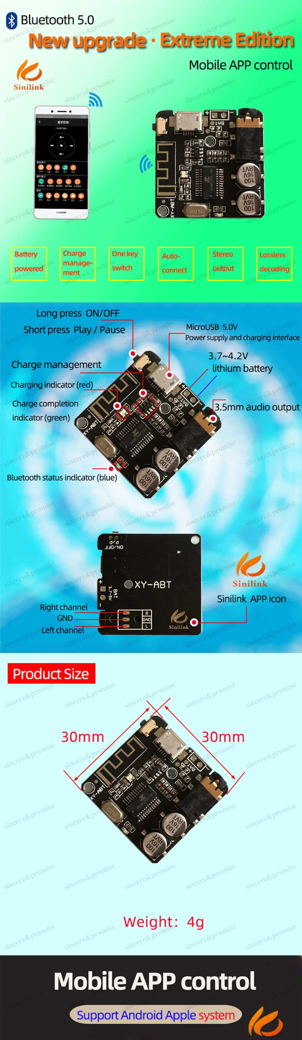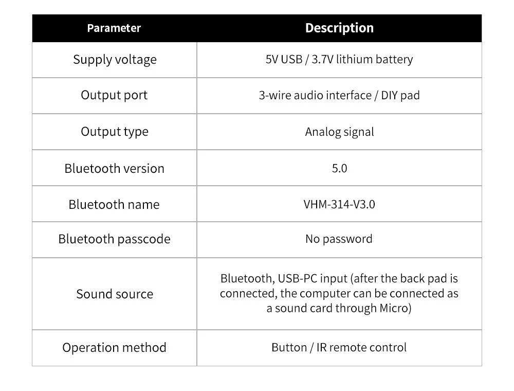Батарейки не входят в комплект пульта дистанционного управления, батарея CR2025. отправка авиапочтой небезопасна. Надеемся на ваше пониманиеПоддержка Bluetooth 4,0 4,1 4,2 5,0, поддержка автоматического подключения, декодирование WAV + APE + FLAC + MP3 без потерь, стерео выход.
