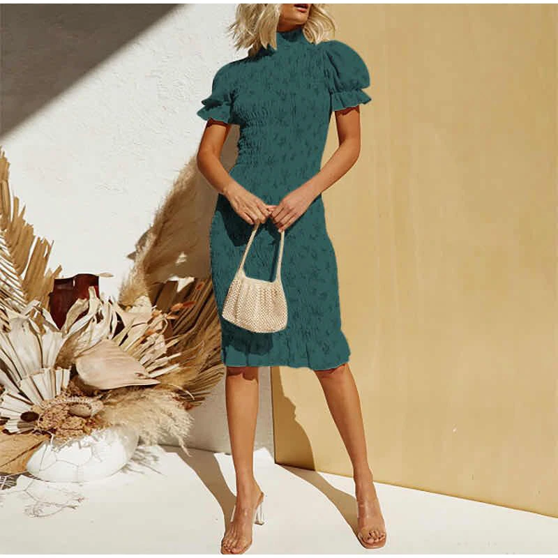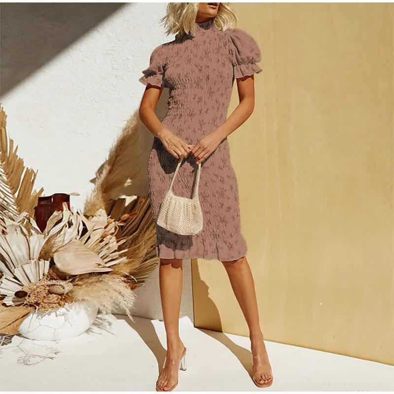 Женское платье в стиле бохо с цветочным принтом и складками, облегающее плиссированное платье с рукавами-фонариками, приталенное женское платье средней длины с высокой талией, 2021 летнее женское пляжное платье