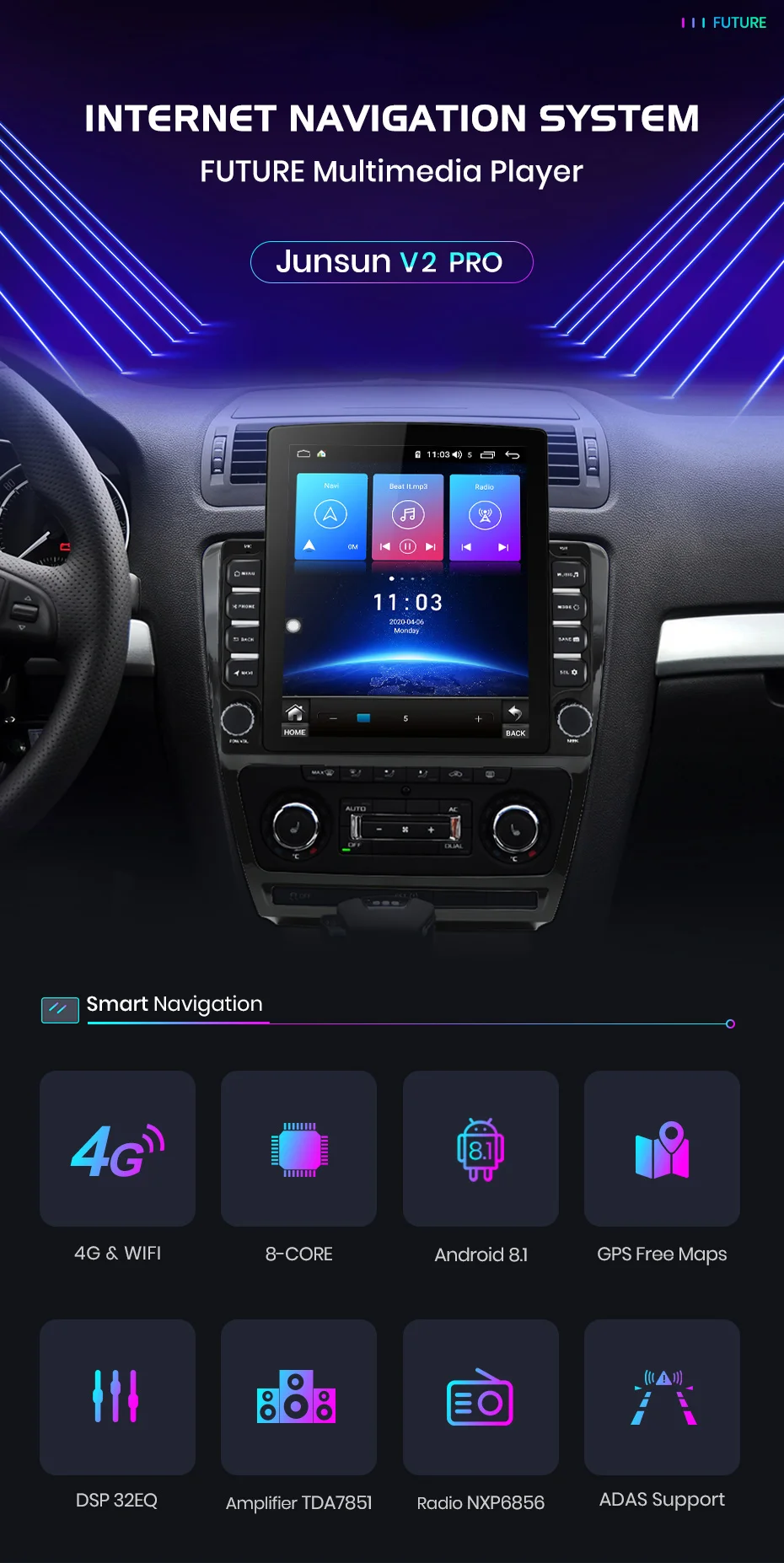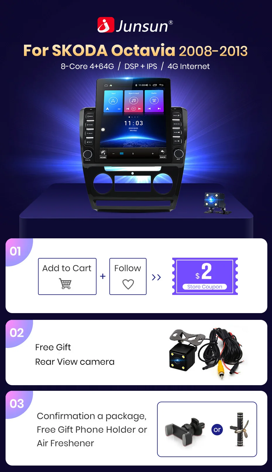 >> Junsun V2 для SKODA Octavia 2 2008-2013 Функция 10-дюймовый 2.5D емкостный экран + четырехъядерный процессор 1.2 ГГц + DDR3 1 ГБ (2 ГБ дополнительно) Flash + 16 ГБ памяти (32 ГБ дополнительно) + Встроенный Wi-Fi (4 ГБ сеть дополнительно) + GPS-навигация (обновление карты, только поддержка бренда Junsun) + управление рулевым колесом + зеркальная связь + Bluetooth + встроенный микрофон + FM / AM + RDS (опция) + поддержка функции USB ADAS DVR + функция Europe DAB + 1080P Vedio Play + HD 1024 * 600 + система контроля давления в шинах >> Язык экранного меню Русский, английский, испанский, итальянский, французский, немецкий, китайский, эстонский, польский, филиппинский, финский, корейский, голландский, хорватский, латышский, литовский, румынский, норвежский, португальский, японский, шведский, тайский, турецкий, украинский, венгерский. >> 24H * 7 Сервисная поддержка В Junsun наша цель - продолжать усердно работать над созданием инновационного аппаратного и программного обеспечения радиоприемника для автомобильного мультимедиа, которое обеспечит вам индивидуальный подход. Мы предоставляем БЕСПЛАТНЫЕ обновления для прошивки, программного обеспечения, карт GPS-навигации.