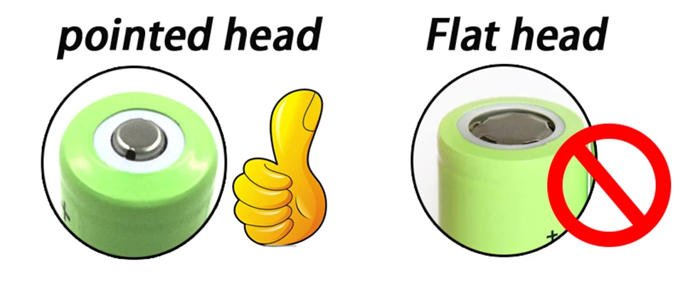 Using pointed head battery is better than flat head. flat head always can not connect headlamp
