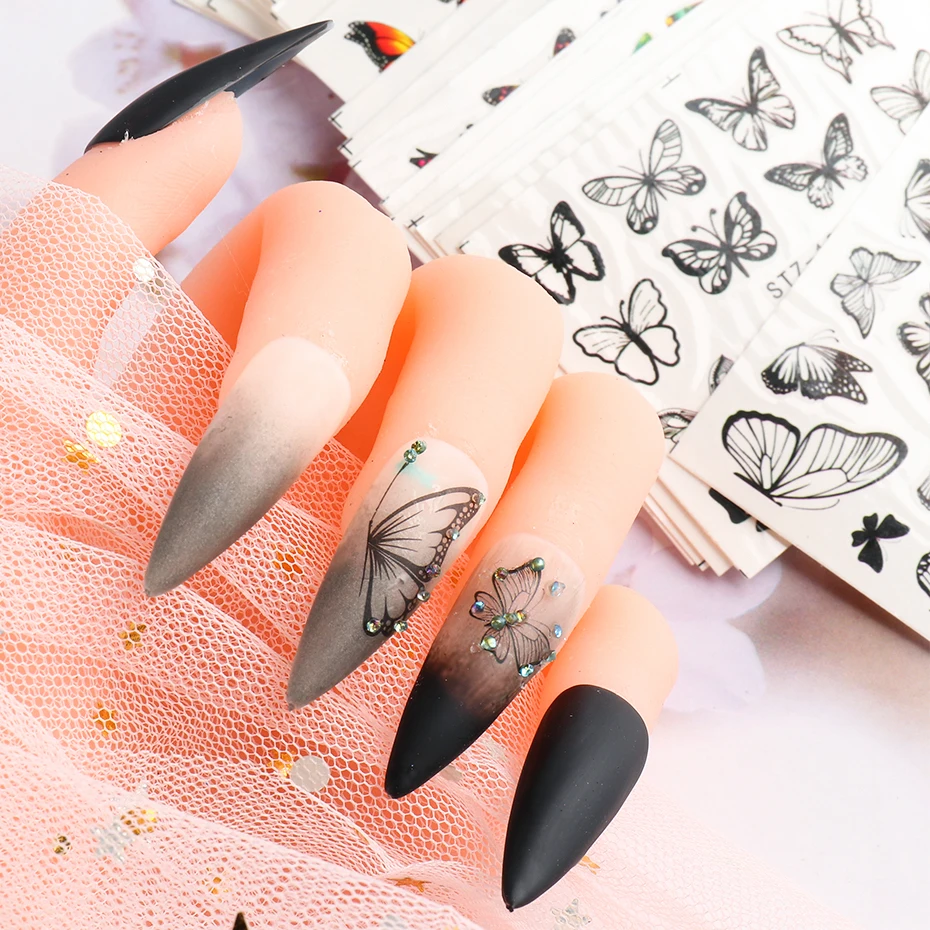 Особенности: Бабочка для ногтей наклейки для воды Черная цветная наклейка с цветами розы Очаровательные бабочки маникюрные украшения Советы 100% новый, высококачественный продукт Украшения для ногтей Легко наносятся на натуральные или искусственные ногти Переводные Водные Наклейки для ногтей Стиль: цветок/бабочка Комплектация: 1 лист 3D наклейки для ногтей