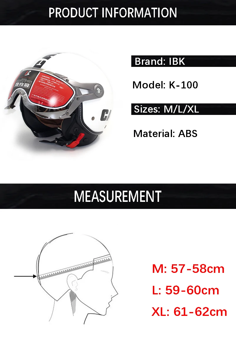 Особенности: Цвет козырька: прозрачный/черный Характеристики: дышащий и водонепроницаемый Цвет: белый Размеры: M: 57-58 см L: 59-60 см XL: 61-62 см Как правильно измерить голову: Измерьте на ленте чуть выше вашей брови вокруг вашей головы только в верхней части ваших ушей. Свяжитесь с нами, если вы не уверены в своем размере. Для получения информации свяжитесь с нами, спасибо!