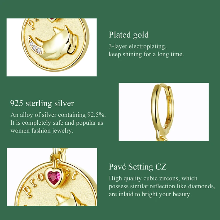 Материал: S925 + окисленное серебро + паве установка CZ Длина: 2,3-3,2 см, ширина: 1,6 см Описание: Если у меня нет рога, вы все еще любите меня? Ретро Стиль монет в сочетании с экологическими темами, дизайнер намеревается обратиться за защитой редких животных.