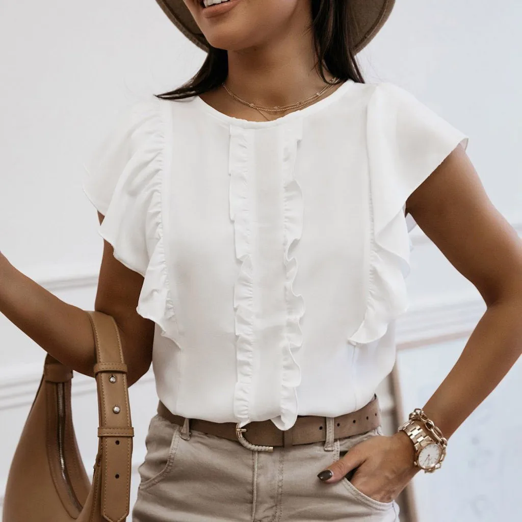 Модная женская летняя футболка в горошек с коротким рукавом и V-образным вырезом