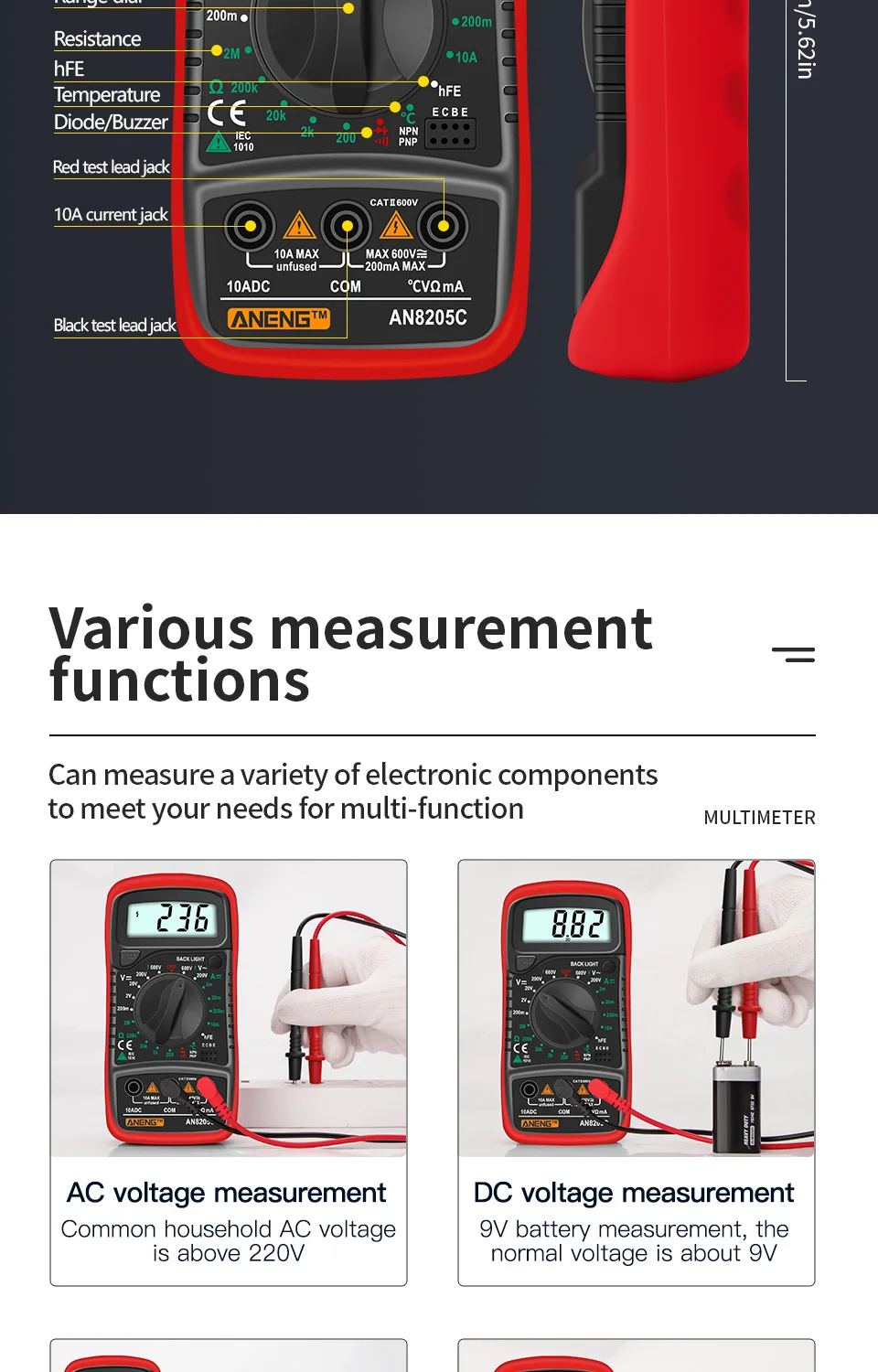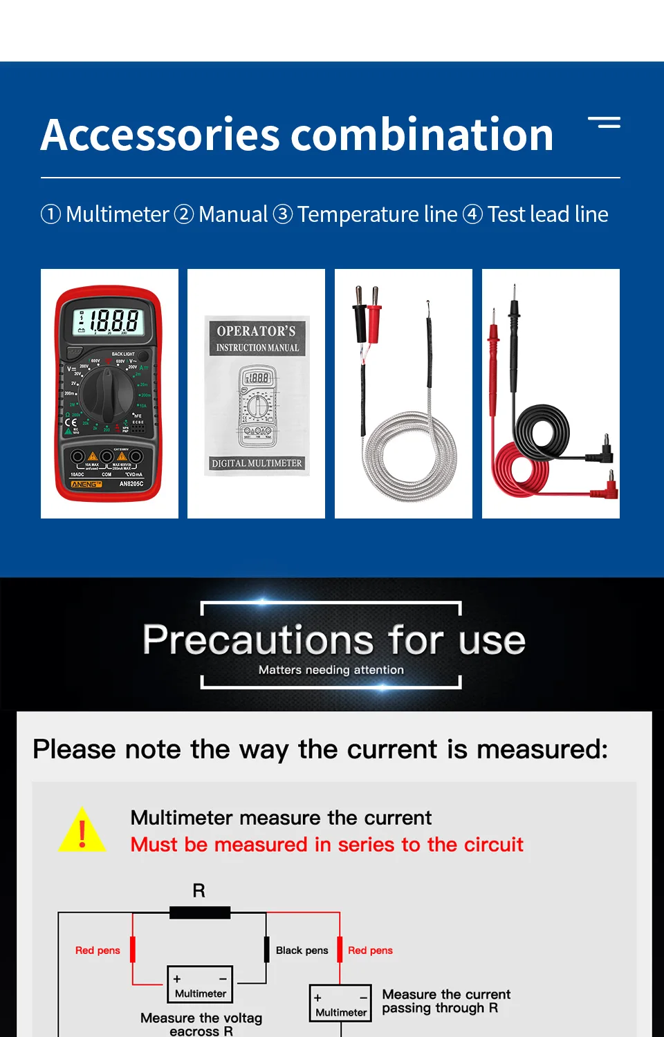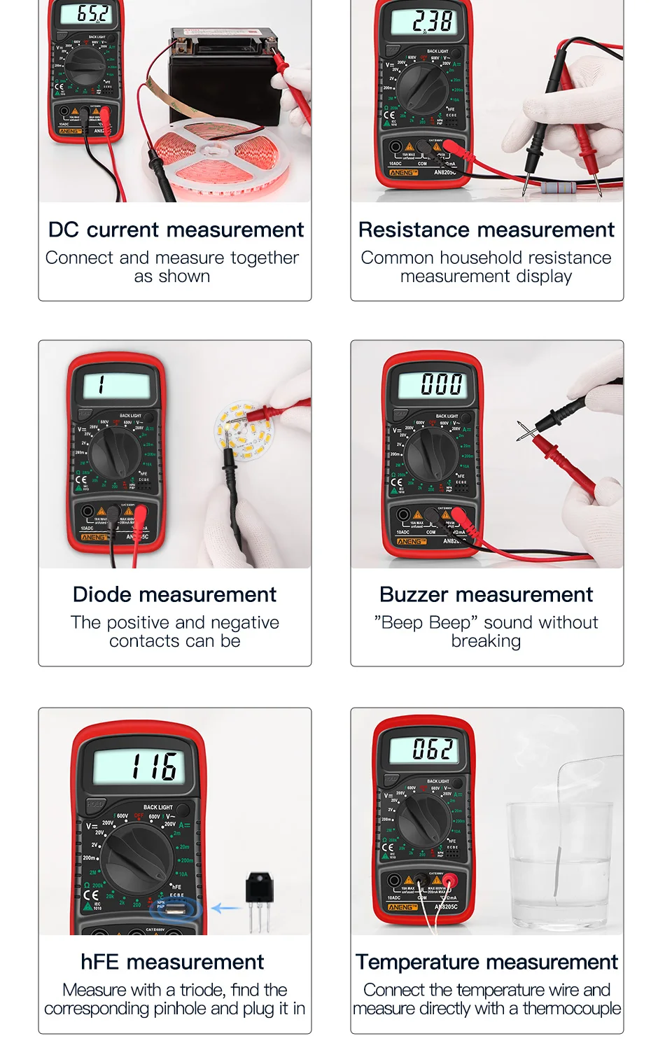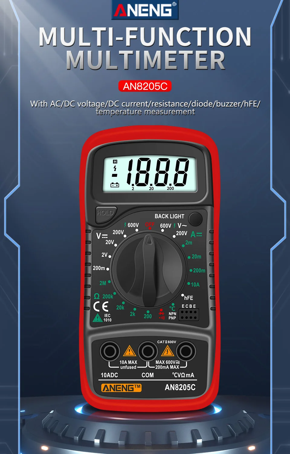 Цифровой мультиметр ANENG AN8205C (аккумулятор не входит в комплект)-1 шт.
