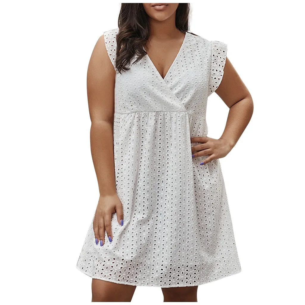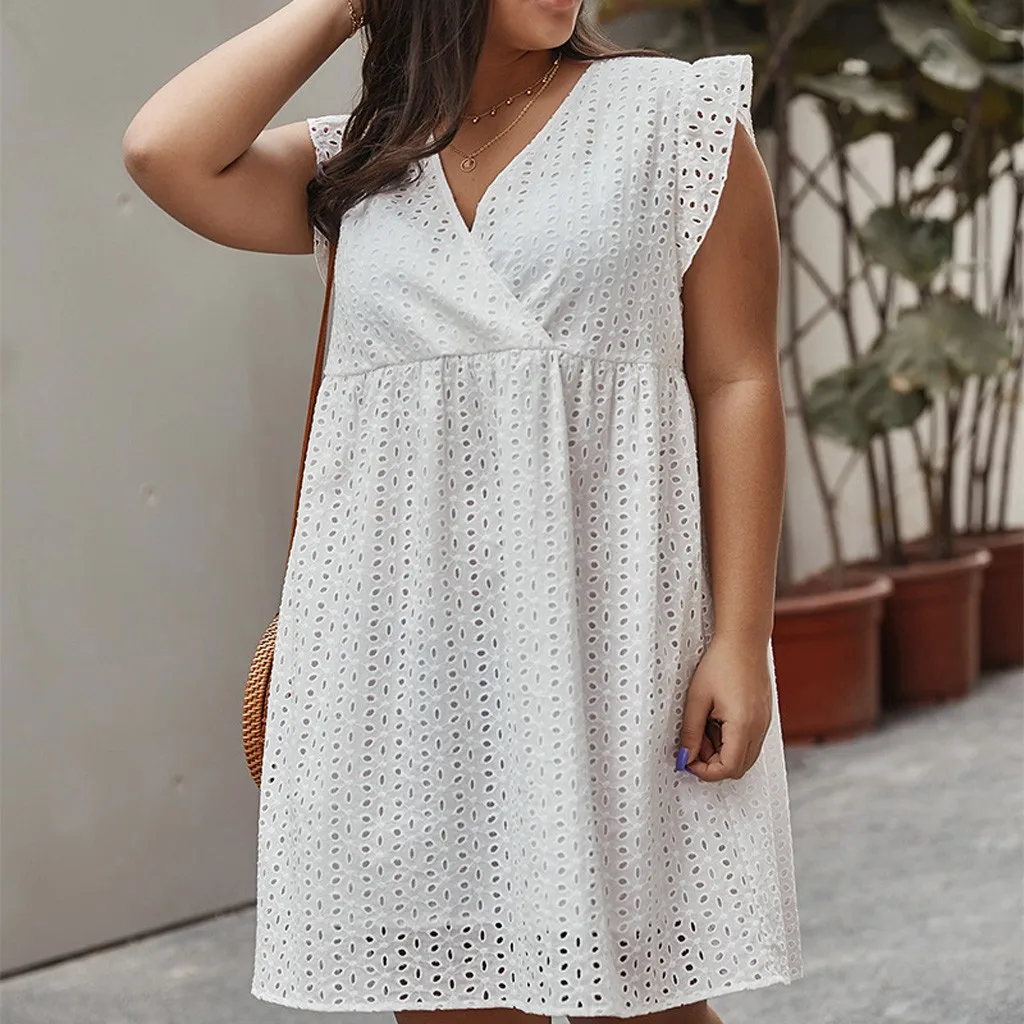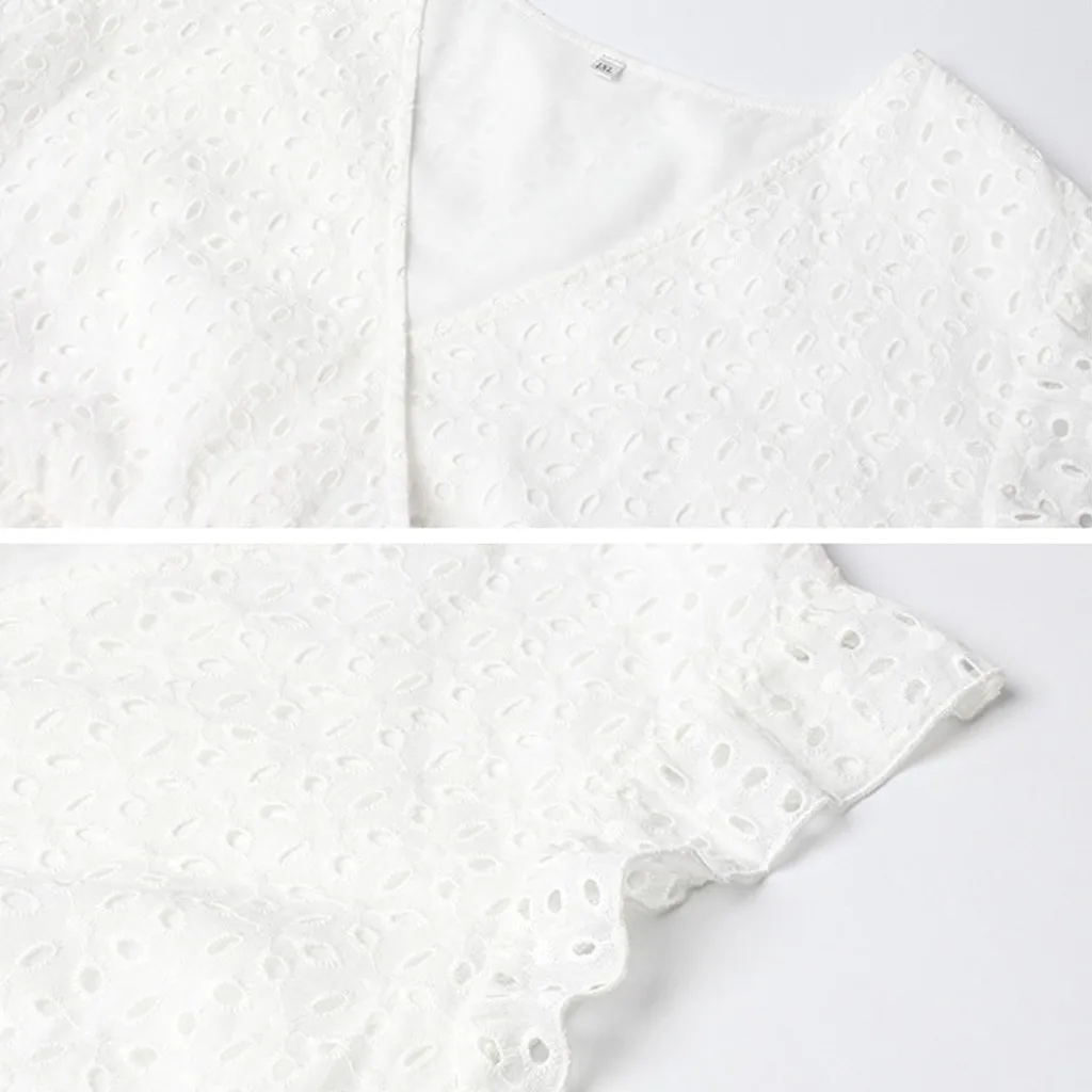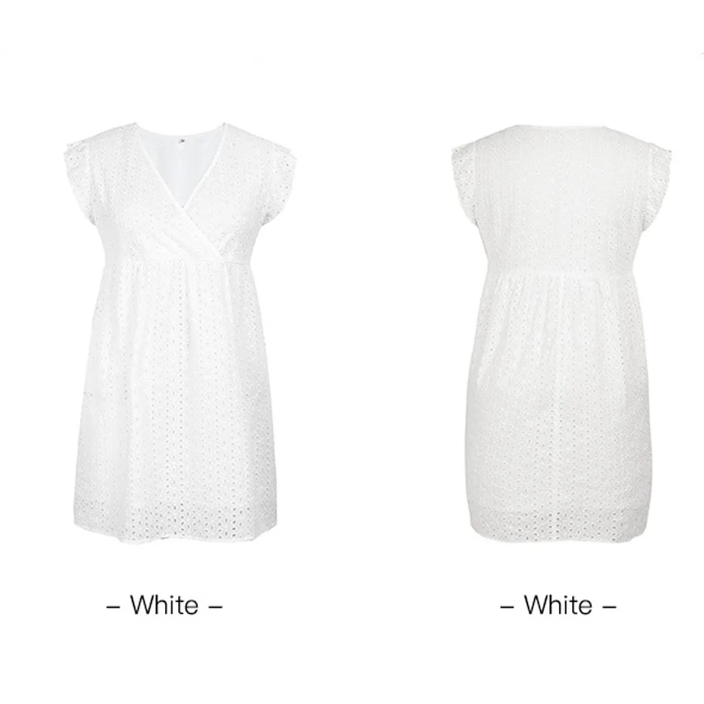 Женское хлопковое мини-платье с вышивкой и v-образным вырезом с коротким рукавом