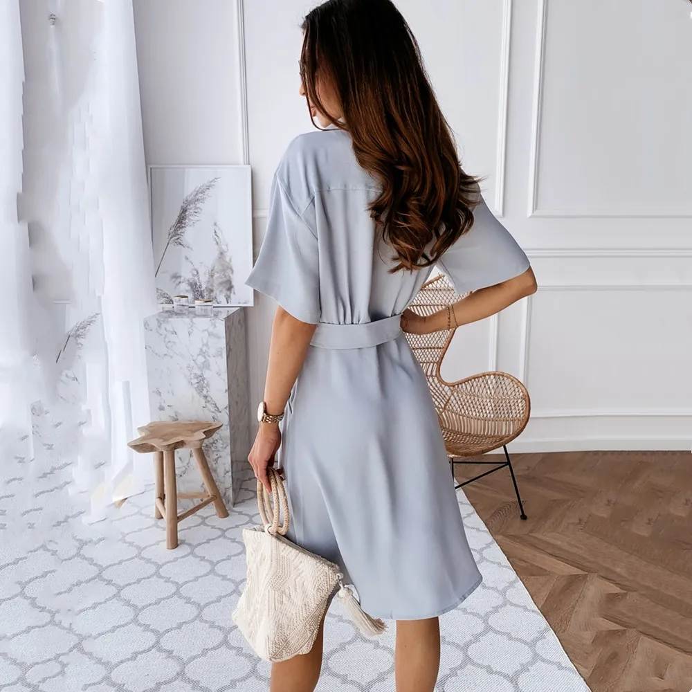 Женское платье на пуговицах в полоску Элегантное летнее с поясом и бантом
