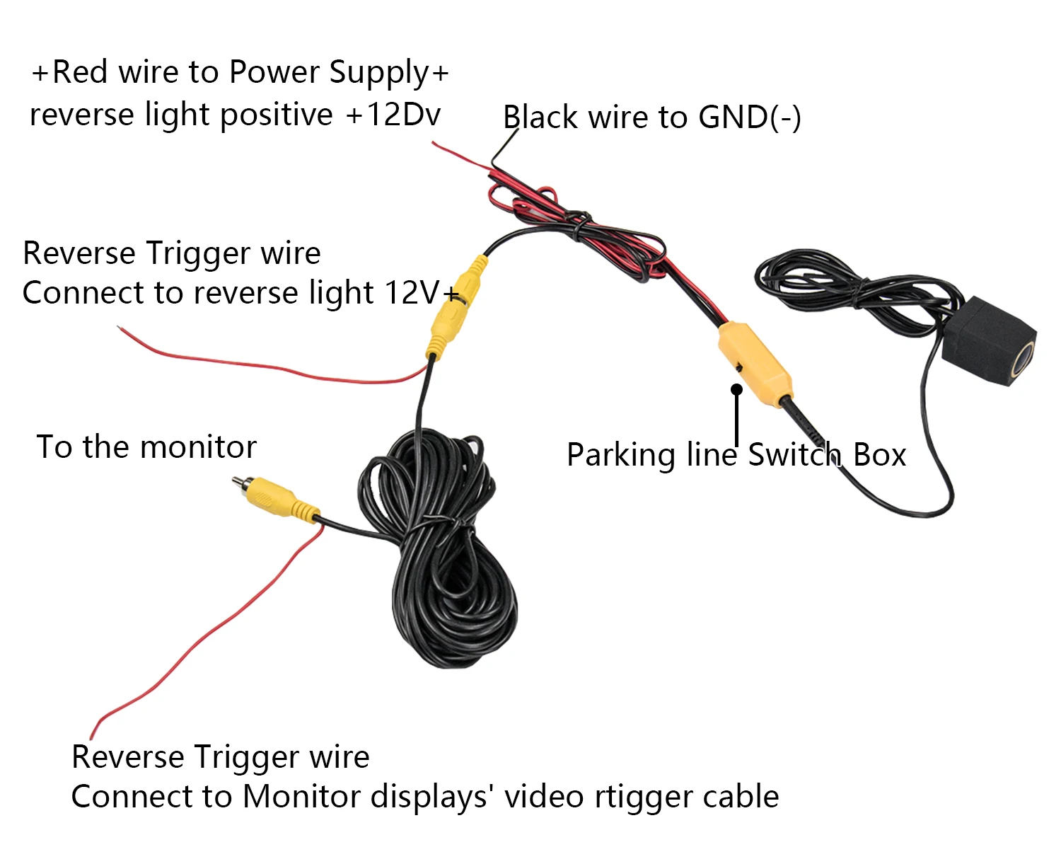 Питание поставляется через порт 12 В для заднего хода автомобиля, поэтому камера автоматически включается при включении заднего хода.