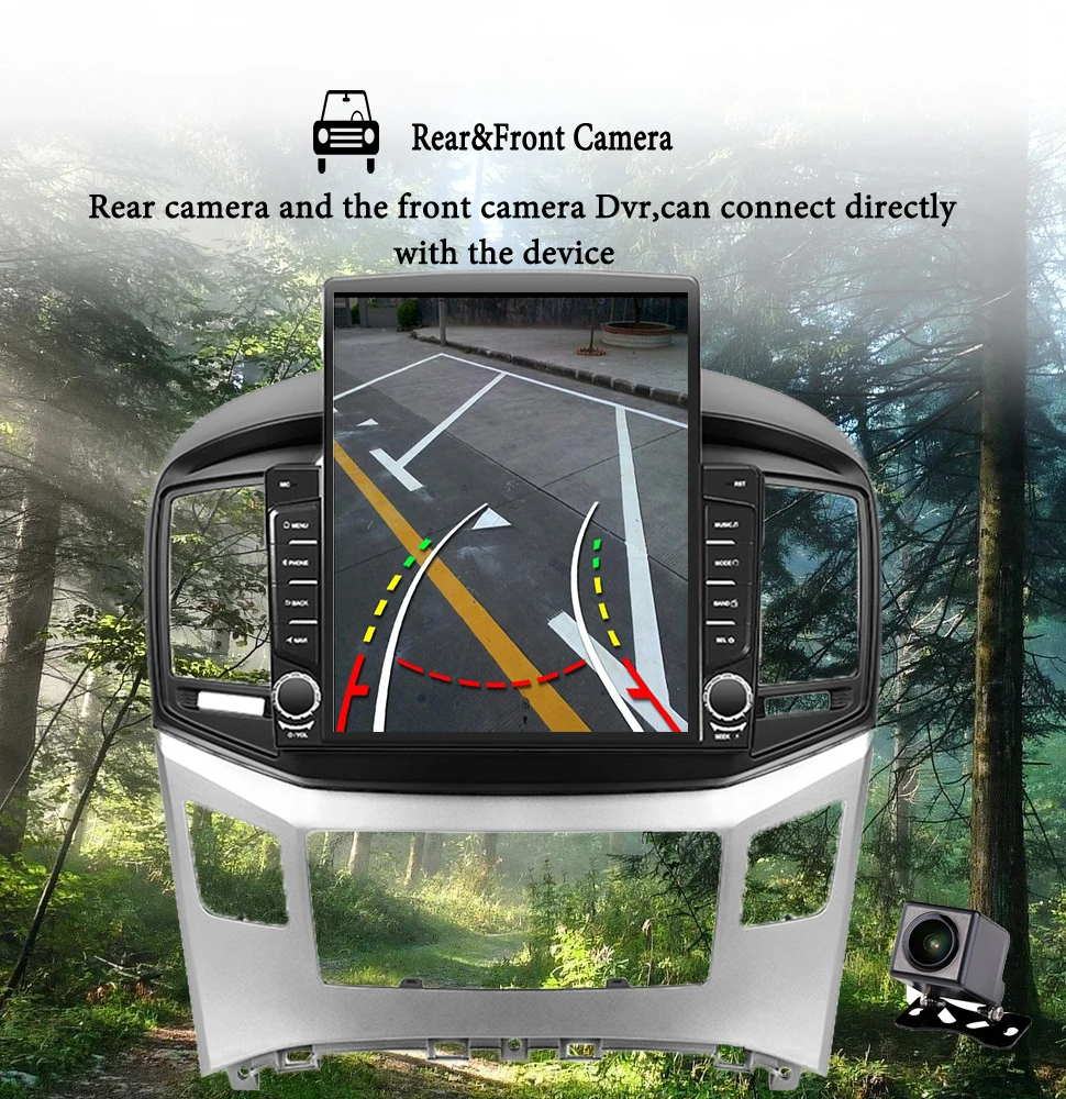 Когда автомобиль находится на заднем ходу, Этот автомобильный DVD автоматически переключается на изображение резервной камеры с линией парковки. (представляет резервную камеру в подарок бесплатно)