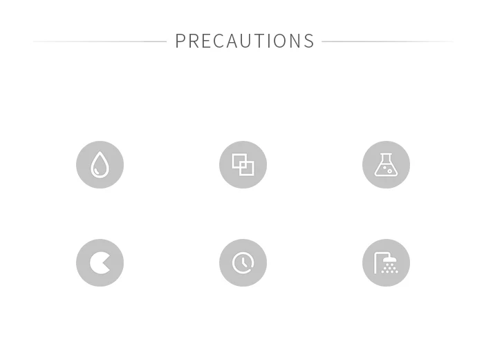 * Избегайте влажных условий * Избегайте попадания твердых предметов * Избегайте контакта с химическими веществами * Предотвращает проглатывание детей * Избегайте ношения в течение длительного времени * Избегайте ношения во время принятия ванны