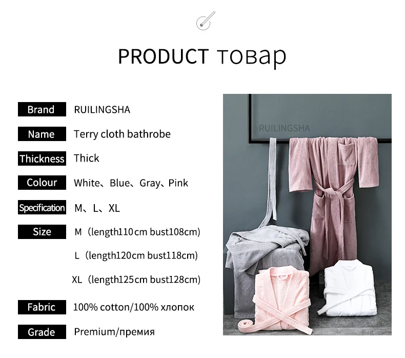 Размер M, обхват груди 108 см, длина халата 110 см, рекомендуемый вес (кг):40-65 кг, рекомендуемый рост (см):150-165 см; Размер L, обхват груди 118 см, длина халата 118 см, рекомендуемый вес (кг):60-77,5 кг, рекомендуемый рост (см):160-180 см; Размер XL, обхват груди 128 см, длина халата 125 см, рекомендуемый вес (кг):75-110 кг, рекомендуемый рост (см):168-190 см; Из-за способов измерения, пожалуйста, учитывайте допуски и погрешность в 1-3 см, спасибо.