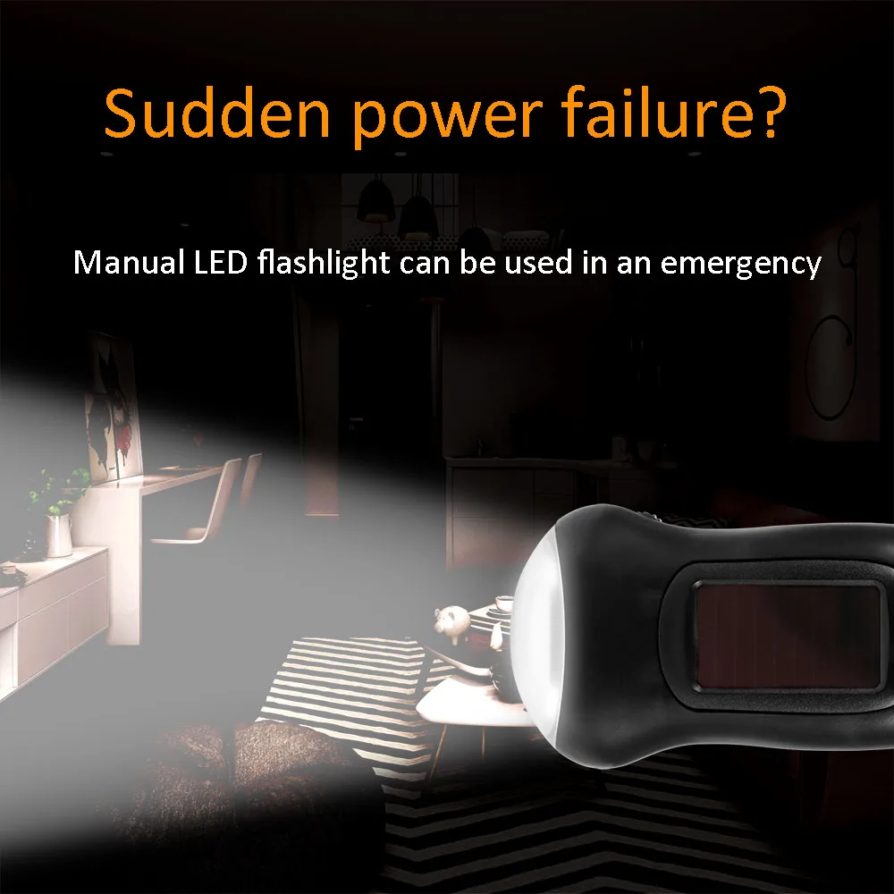 Аморфная Кремниевая солнечная панель также поддерживает ручную генерацию энергии для обеспечения световой мощности. Встряхните ручка с постоянной скоростью 120 оборотов в минуту, а выходная мощность составляет ≥ 0,4 W. Одна минута ручной тряски может поддерживать освещение около 10 минут.