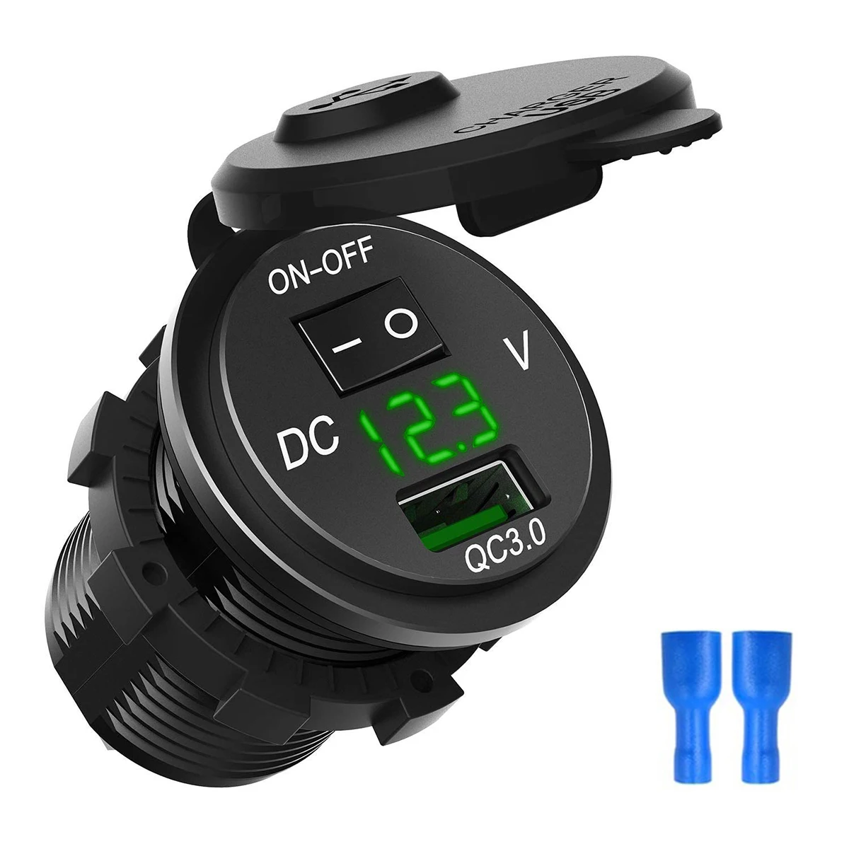 QC 3.0 USB socket charger with voltmeter, real-time show the battery voltage
