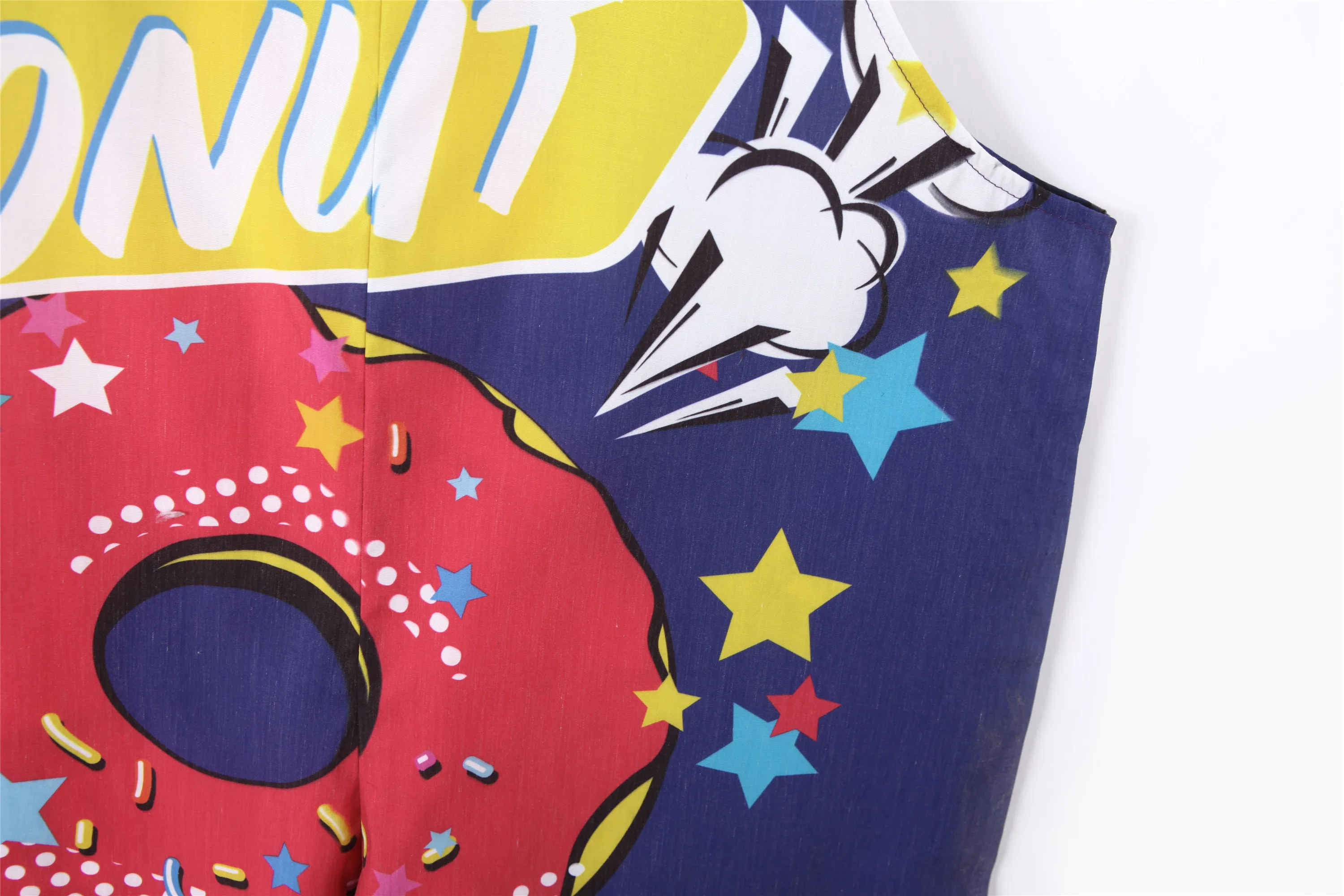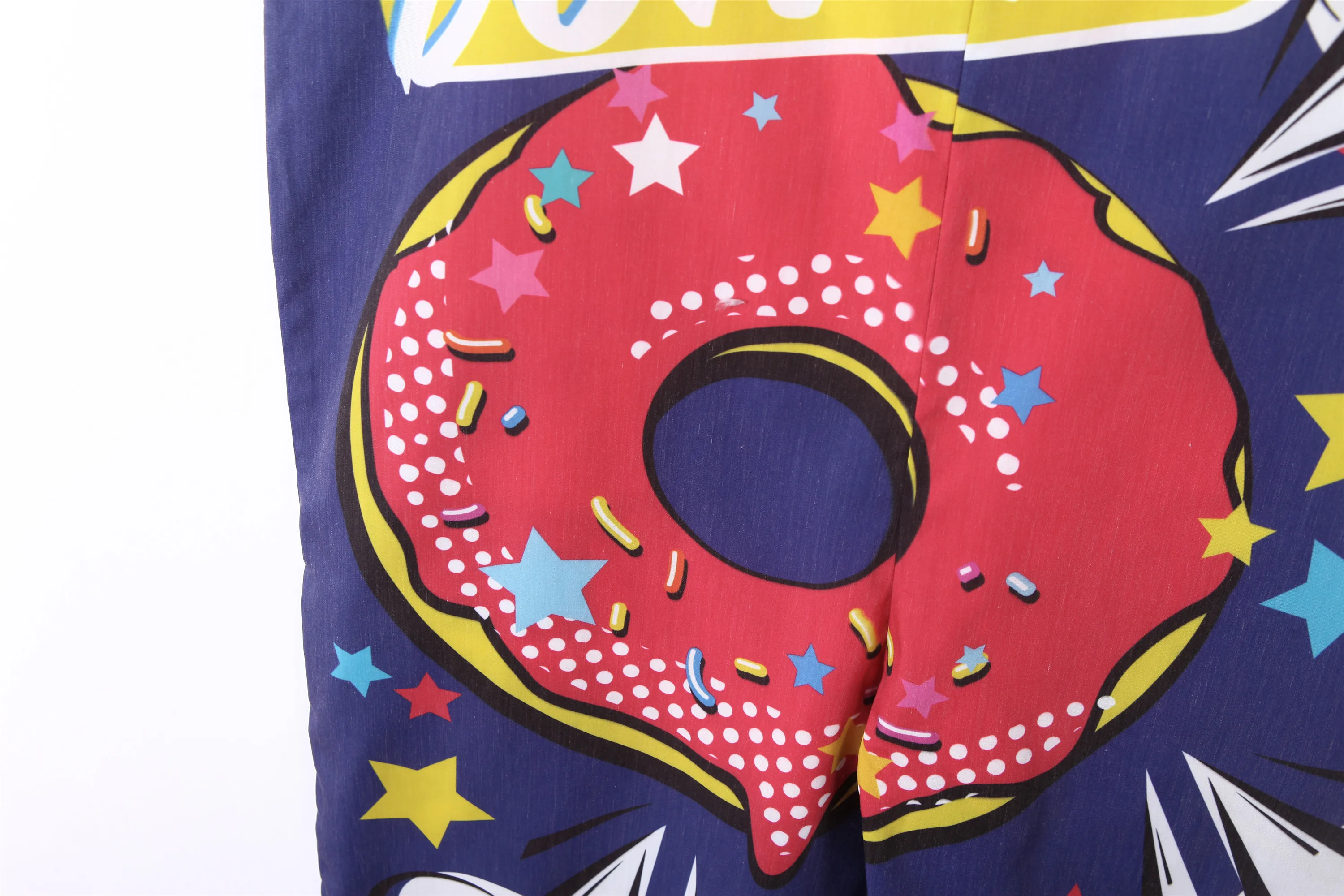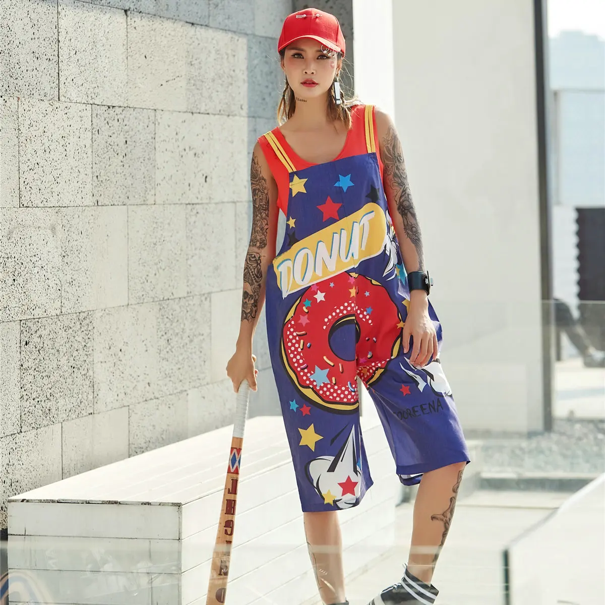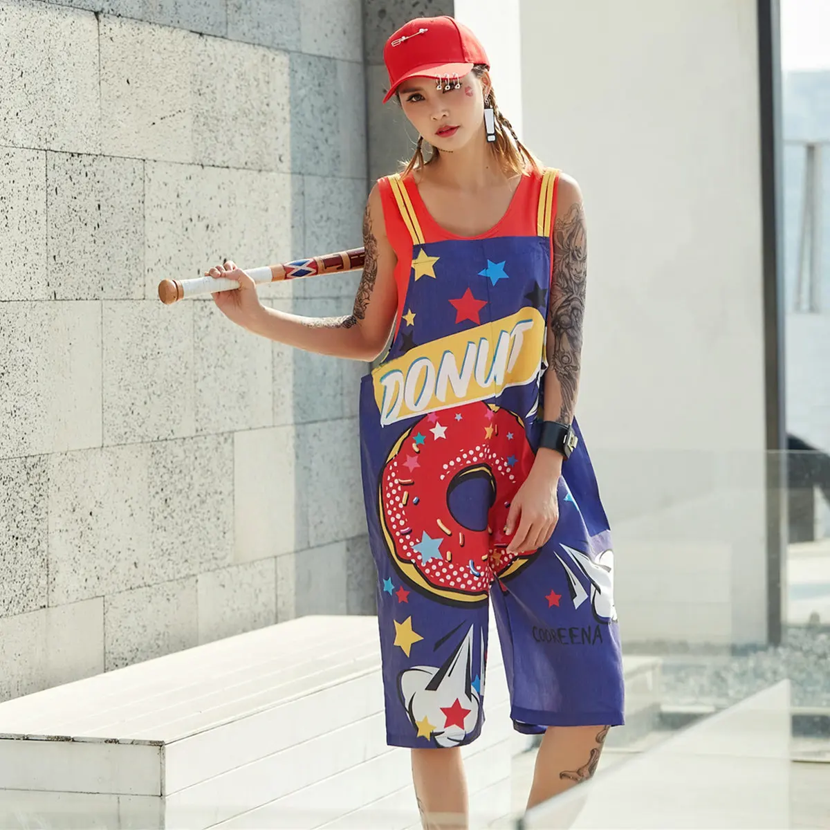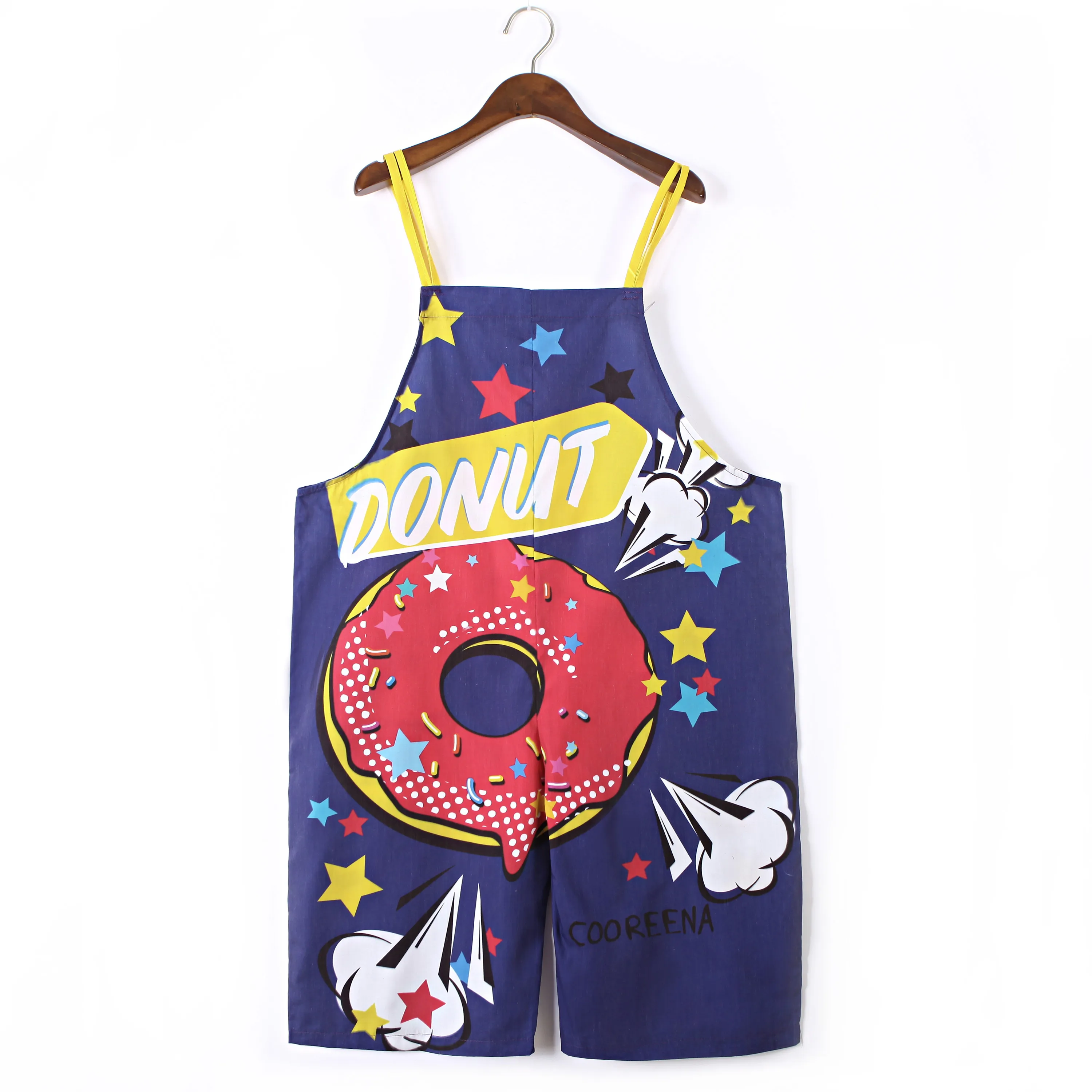 Женский комбинезон с широкими штанинами, Свободный комбинезон большого размера с принтом пончика, Тонкие штаны в стиле Харадзюку, для лета, 2020