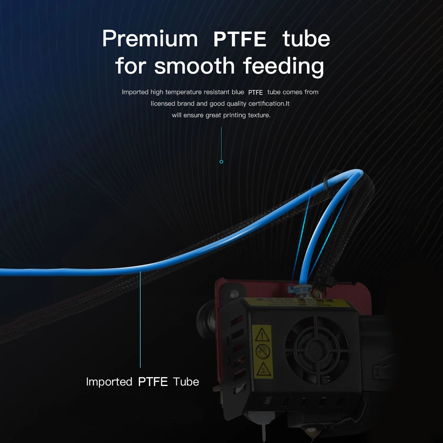 Импортная Подающая трубка и двойной привод:Термостойкая Подающая трубка для плавного кормления, не легко блокируется, гарантирует эффективность печати. Двойной механизм штранг-прессования с сильной силой штранг-прессования для гладкой подачи.