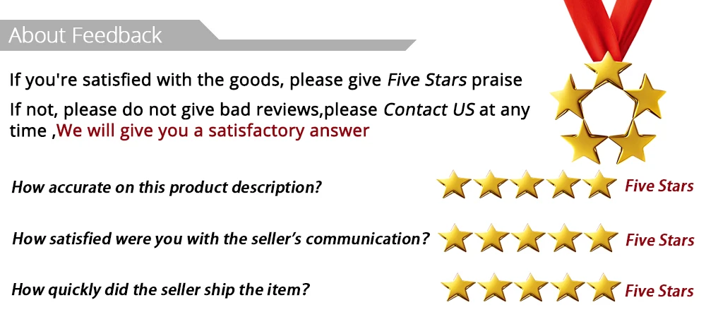 4. Мы должны с удовольствием помочь им решить любую проблему, пожалуйста, свяжитесь с нами, прежде чем оставлять нам отрицательные отзывы.