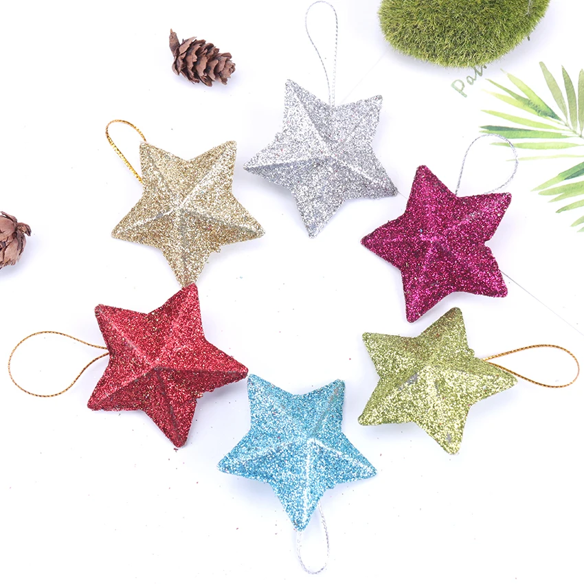 6 шт., 5 см цветные рождественские украшения в виде звездочек, Свадебный орнамент с рождественской елкой, украшения для рождественской вечеринки