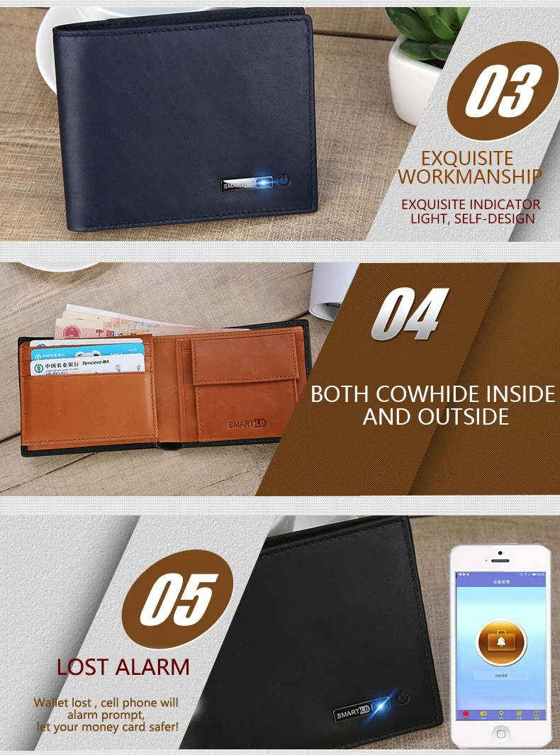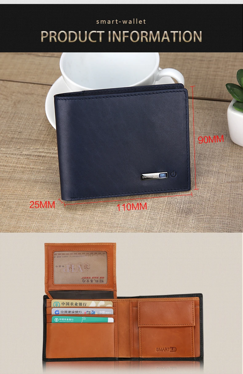 1. Вам нужно различить разницу между умным кошельком и обычным кошельком. 2. Умные кошельки и обычные кошельки изготовлены из той же кожи 3. Смарт-кошелек может быть подключен к мобильный телефон через Bluetooth, и имеет функции противоугонной, анти-потери и позиционирования. 4. Умный кошелек имеет встроенный литиевый аккумулятор, который можно заряжать с помощью usb-кабеля