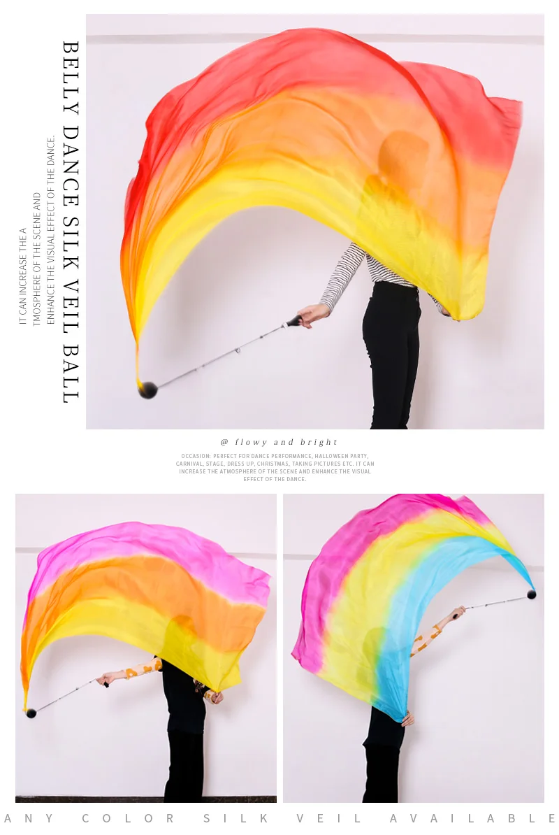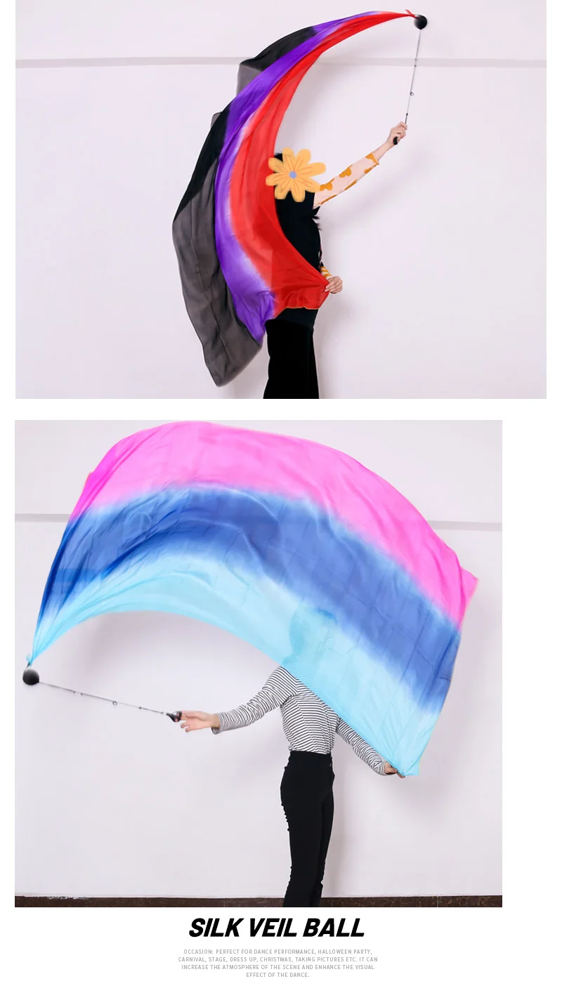 Танец живота шелк вуаль пой цепь мяч для женщин Танец живота 100% шелк POI стример реквизит для сцены брошенный мяч Профессиональный индивидуальный