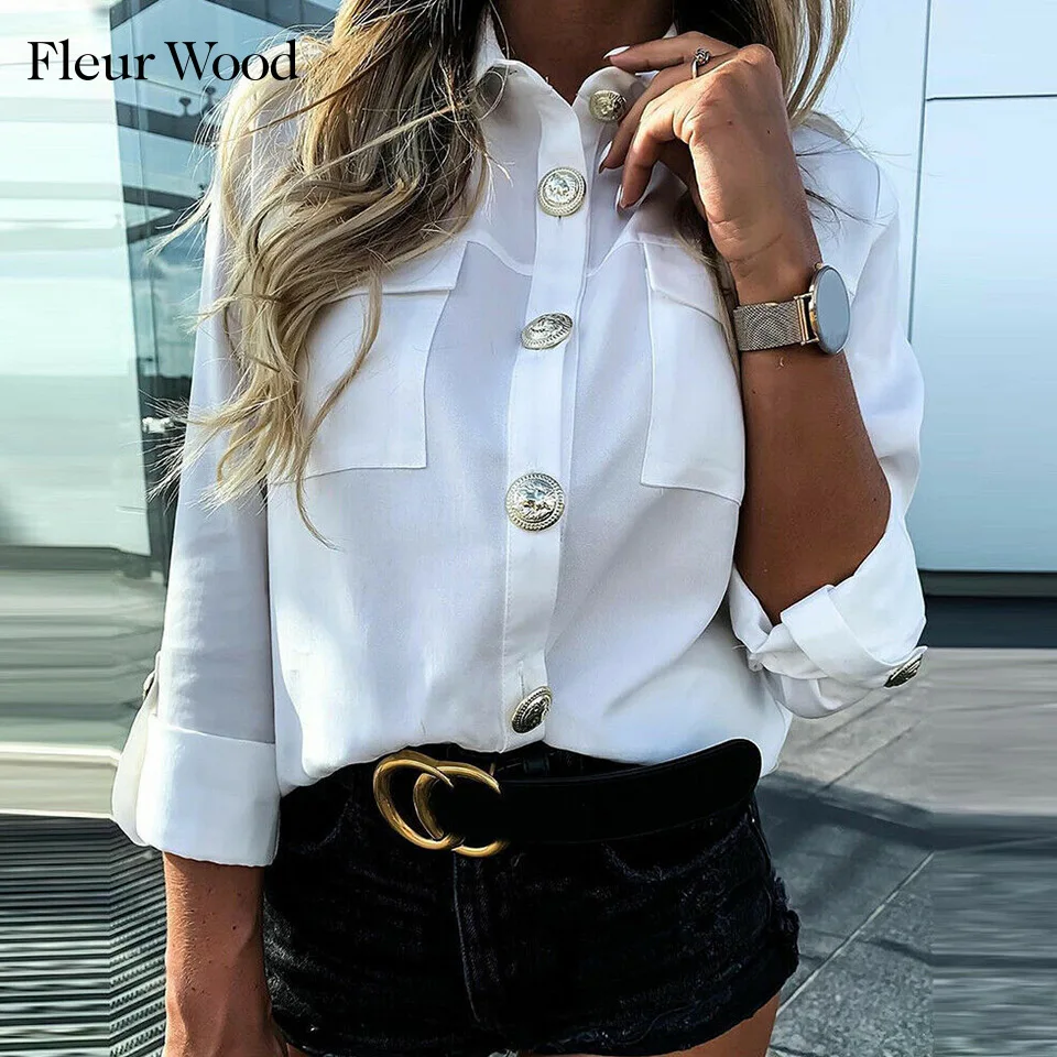 Женские блузки с длинным рукавом Fleur Wood, винтажные рубашки с пуговицами, Женские топы и блузки kobiety bluzki, женские блузы, осенние Рубашки размера плюс