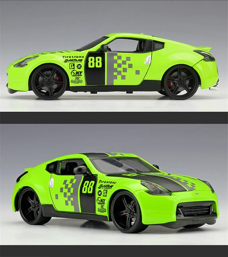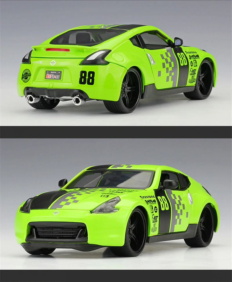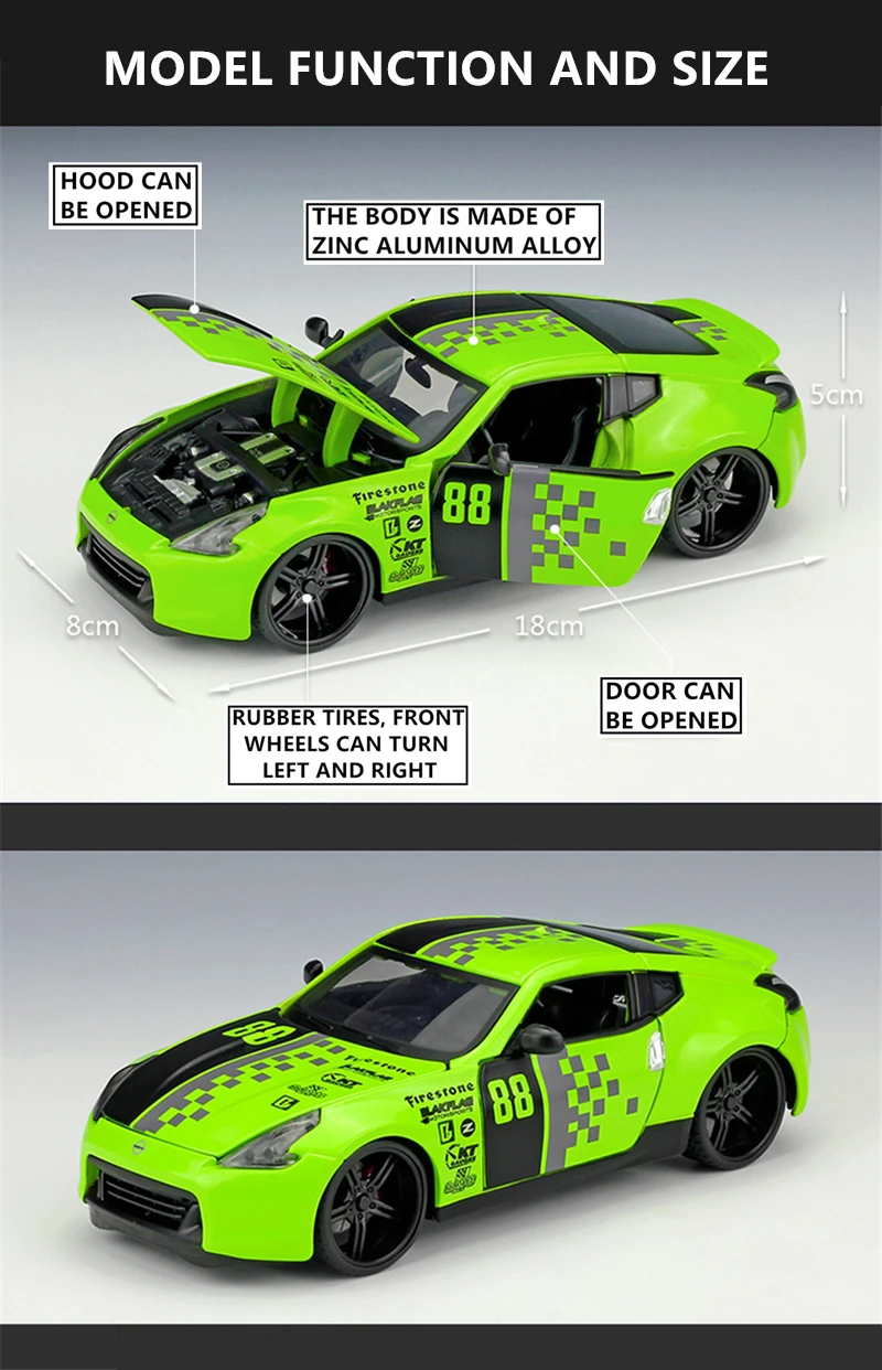 Введение продукта Название: 2009 Nissan 370Z модифицированное издание Бренд: Maisto Размер: около 18*5*8 см Масштаб: 1/24 Материал: основной корпус-цинковый сплав, другие-АБС и Резина Наши продукты гарантированно являются аутентичными. Оригинальная Заводская оригинальная коробка. Официальное разрешение Этот продукт является коллекционной игрушкой, за исключением электрической. Шины могут быть перемещены, и рулевое колесо двери может быть перемещено.