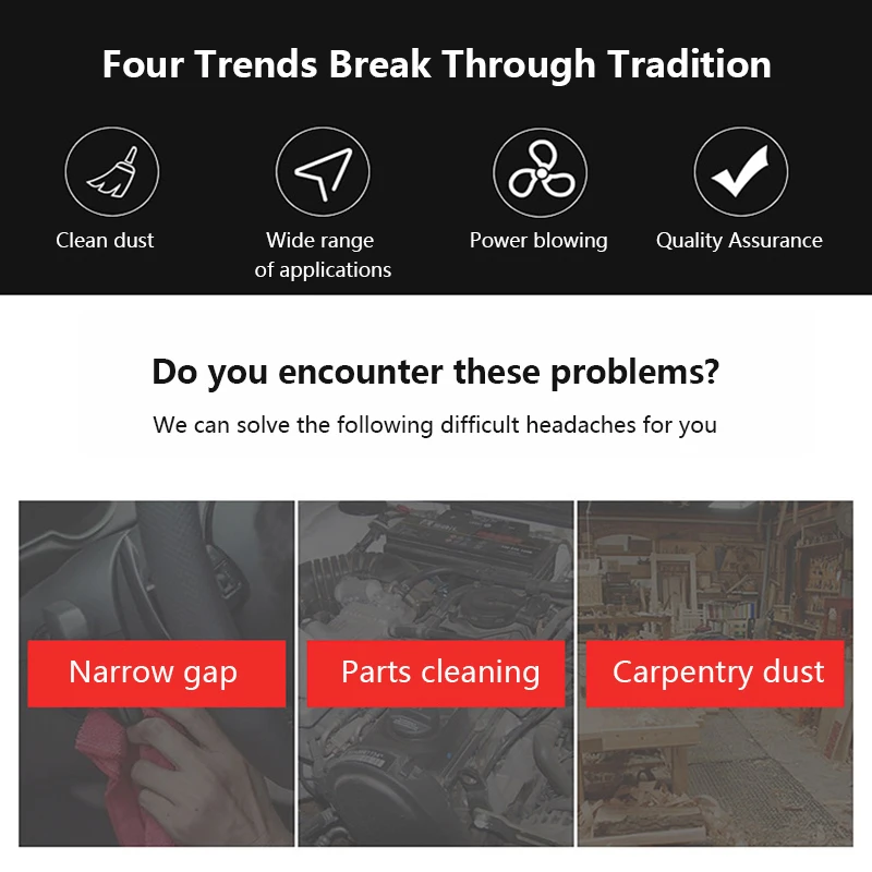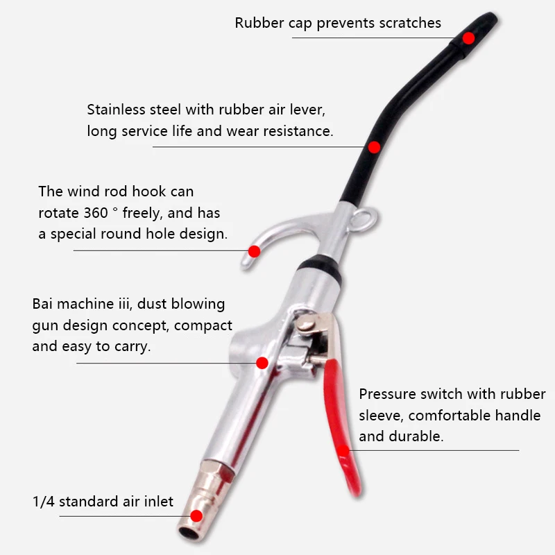 * С этим воздушным ударным пистолетом вы можете быстро удалять упрямый мусор, пыль, воду и многое другое, идеально подходит для любого стандартного воздушного компрессора, автомобильных деталей, заводской очистки машинного оборудования, техническое обслуживание компьютера и хранение в доме пыли.