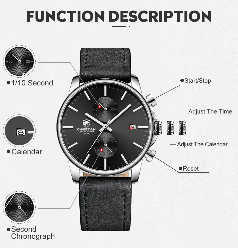 Идеально подходит для любого вида бизнеса, повседневного использования, занятий спортом на открытом воздухе, занятий в помещении или ежедневного использования, все маленькие циферблаты работают с реальной функцией хронографа!