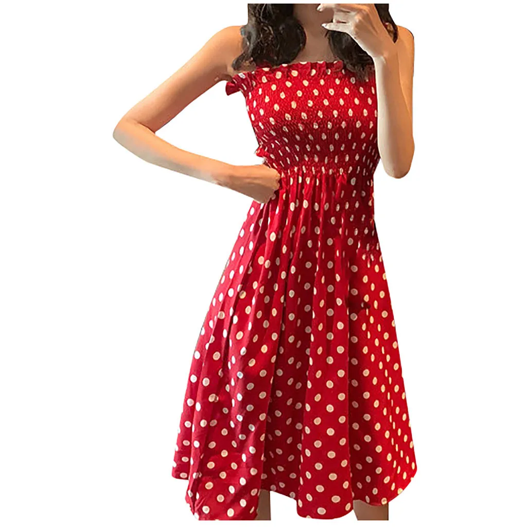 Модное женское свободное Повседневное платье без рукавов в горошек размера плюс