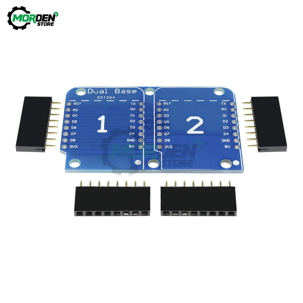 Особенности: Двойная основа для всех мини-модулей и щитов Wemos D1 Дубликаты ввода/вывода и питания Предупреждение: all I/O созданы для того, чтобы их 3,3 V совместим только. Посылка включает в себя: 20 х Коротких женских штифтов 5 x двойная база