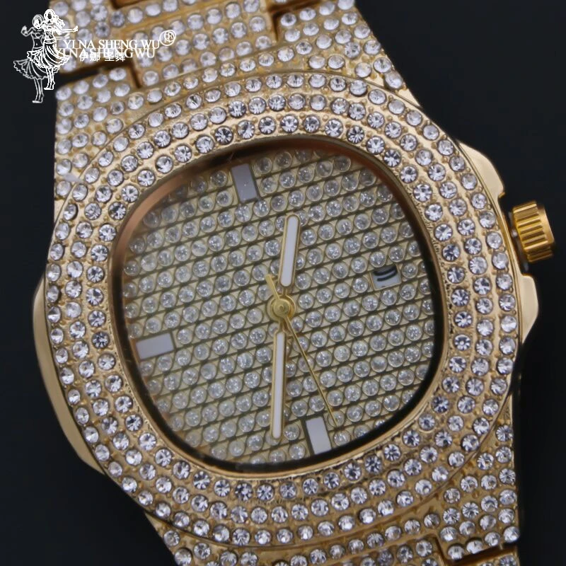 Роскошные мужские часы золотистого и серебристого цвета, мужские часы в стиле хип-хоп и ожерелье, комбинированный комплект со льдом, кубинская цепочка в стиле хип-хоп для мужчин, ювелирное изделие, подарок 2020