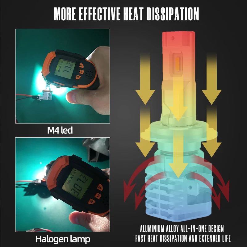 Светодиодный чип: CREE Мощность чипа: 50 Вт Рабочее напряжение: 9-32 В постоянного тока Рабочая температура: -40 дегк ~ + 80 дегк Цветовая температура: 6500K Дизайн: все в одном дизайне с пассивным охлаждением Срок службы: >30000 часов Теория рассеивания тепла: авиационный алюминий 6063 Фактическая мощность составляет 90% от теоретической мощности Подходящие модели автомобилей: 90% моделей на рынке