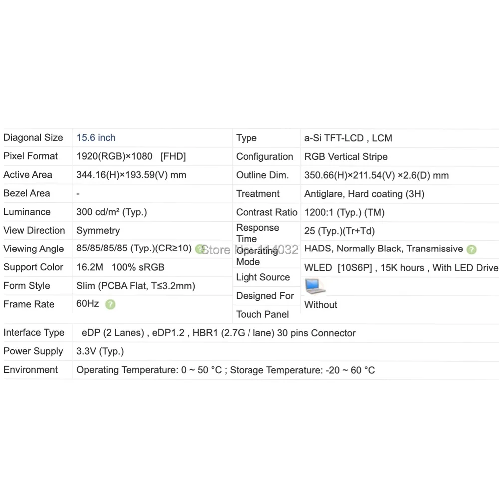Размер экрана: 15,6"