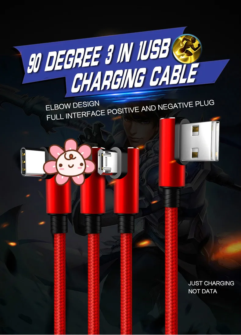 Сверхбольшой медный провод плюс один-три тонких нейлоновых плетеных провода для передачи данных, с чрезвычайно быстрой скоростью зарядки,