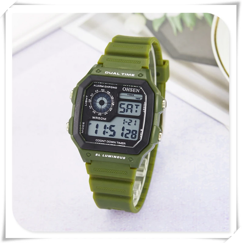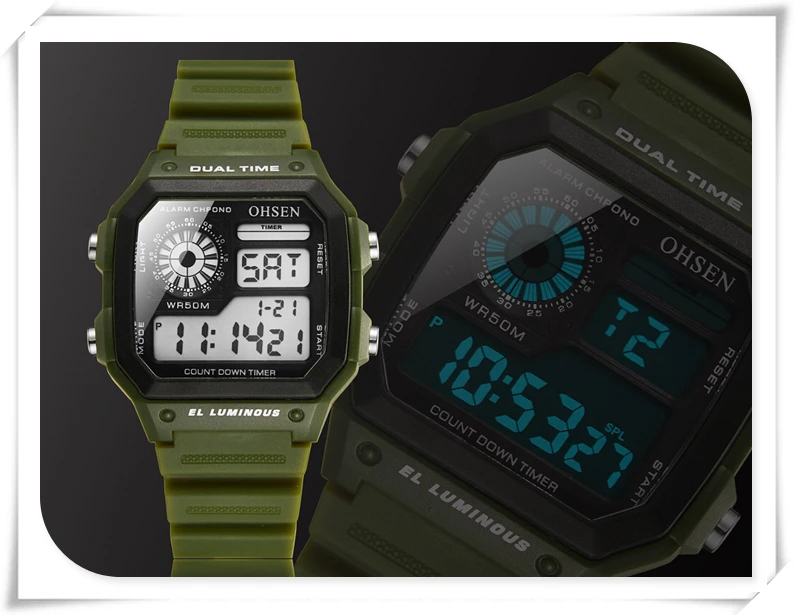Характеристики: -Чехол Диаметр: 43 мм -Чехол Толщина: 14 мм -Цвет ремешка: как на картинке -Длина ремешка: 260 мм (ремешок можно регулировать) -Ширина ремешка: 24 мм Особенности: -Передовые технологии производства, хорошо носить и носить комфортно -Прочный водонепроницаемый чехол -Подсветка в темноте -Высокопрозрачное зеркало из смолы -100% новый, высокое качество -Японская Кнопка Maxell внутри, обеспечивая более длительный срок службы -Чехол для часов из нержавеющей стали, более прочный -Резиновый ремешок хорошего качества, более удобный -Задняя крышка из нержавеющей стали с лазерным логотипом OHSEN -Пряжка из нержавеющей стали, легкая регулировка ремешка -Цифровой дисплей: час, минута, секунда, pm, месяц, дата, день -Формат 12/24 часов -Будильник и функция ежечасного звонка -2 часовых пояса -Специальная конструкция с хронограф (секундомер) при температуре не выше 0,01 второй шаг -Глубина водонепроницаемости до 50 м (не нажимайте кнопку в воде) -Дополнительный ЖК-светильник для отображения времени в темноте -Ударопрочный, идеально подходит как для наружных, так и для внутренних видов спорта, таких как бег, альпинизм, рыбалка и т. Д.
