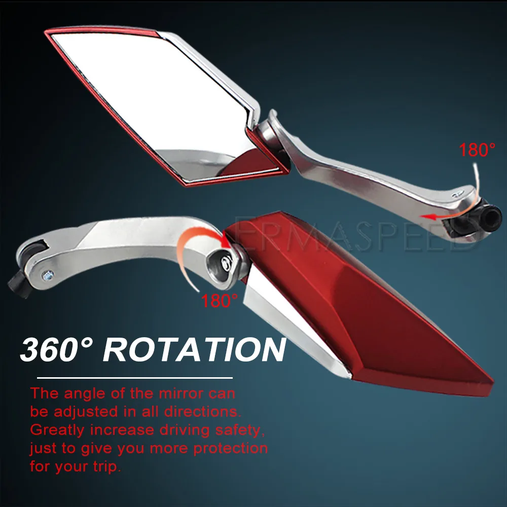 -100% новые зеркала -Материал: пластиковая крышка, стекло и металлический столб -Диаметр винта: 8 мм и 10 мм -Зеркальное стекло: прозрачное -Высокое качество и простота установки. -Cool может предложить большие зеркала, зеркало может вращаться на 180 градусов, повседневный стиль.