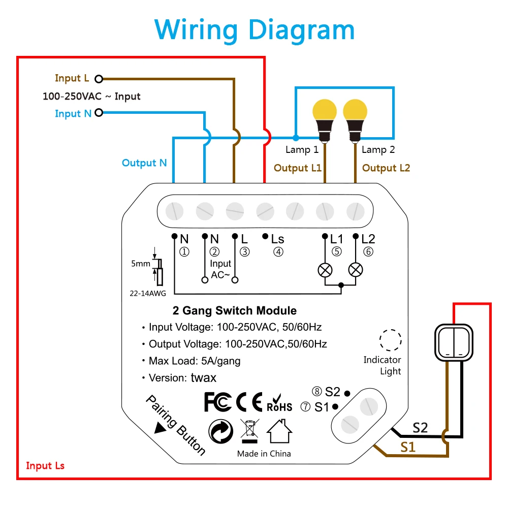 Вход Напряжение: 100-250VAC Выходное напряжение: 100-250 В переменного тока Максимальная нагрузка: 5 А/комплект Размеры: 47 мм * 48 мм * 23 мм Беспроводной Тип: Wi-Fi 2,4 ГГц Название приложения: Smart Life, Tuya Работает с рокером/переключателем, настенным выключателем