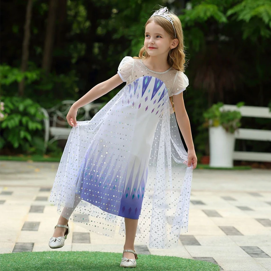 Название платья: платье Эльзы для девочек; Костюм Снежной Королевы 2; Костюм Эльзы и Анны; Детские вечерние платья принцессы на День рождения; Детская летняя нарядная одежда