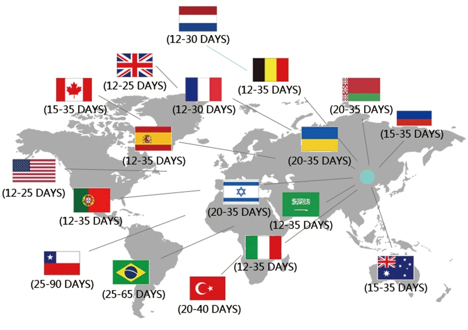 West Западный евро, Средний Восток, Океания и Восточный евро обычно занимает 10-30 рабочих дней