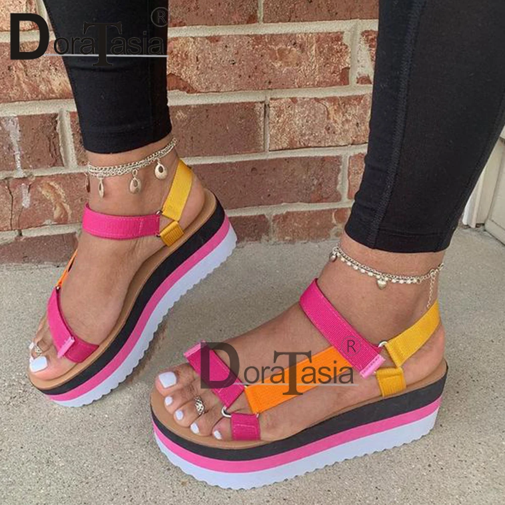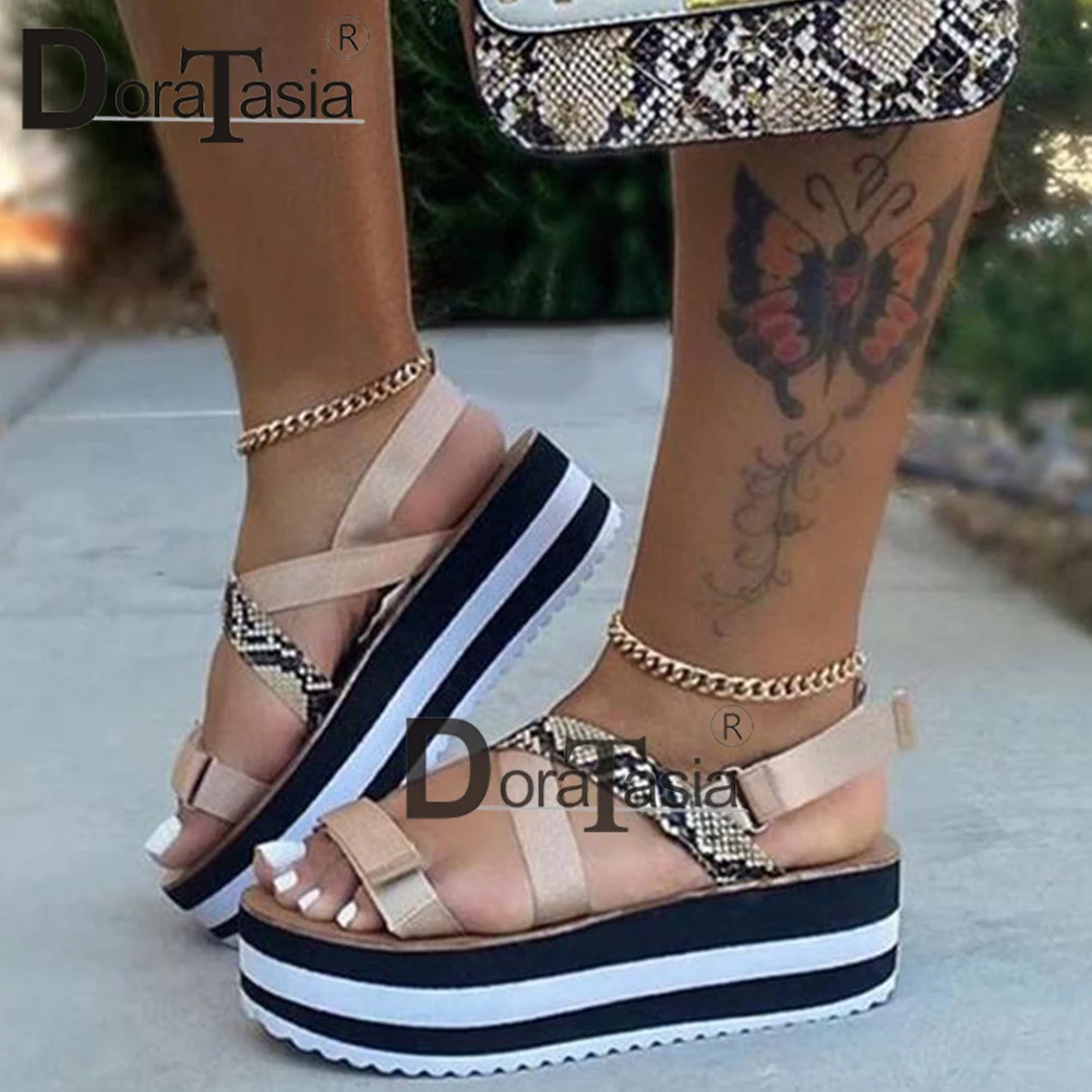 Женские сандалии на высокой платформе украшенные бисерными нитями с мягкой подошвой Обувь танкетке Для