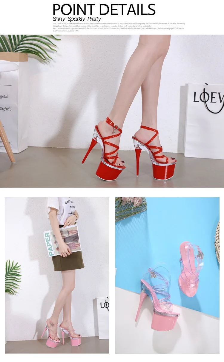 Сказочные женские босоножки стальная труба стриптиз женская модель туфель на высоких каблуках 17,5 см; Туфли с прозрачными вставками; Женские свадебные туфли