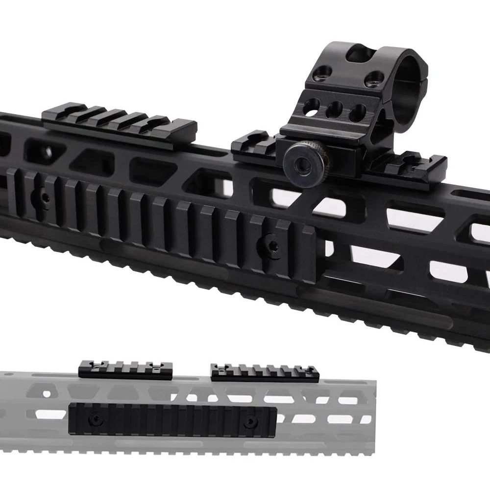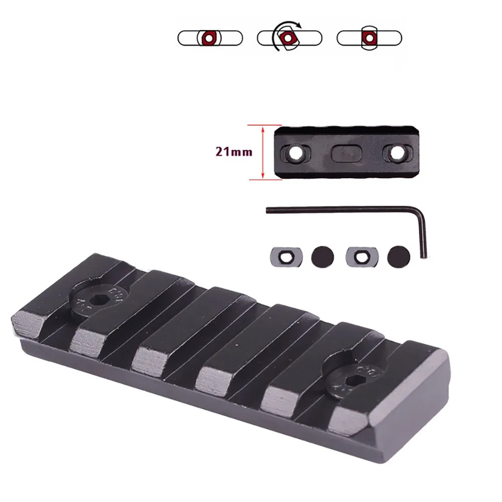 Направляющие Пикатинни позволяют добавлять любые стандартные 21 мм аксессуары Пикатинни, такие как крепление стропы, железный прицел, Красная Зеленая точка прицела, микро точка, прицелы, оптика, ручки, сошки, фонарики, лазеры или другие тактические
