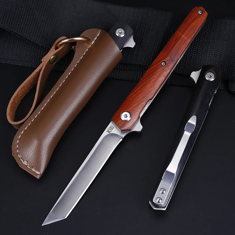 1X складной нож 1X кожаный чехол для ножа