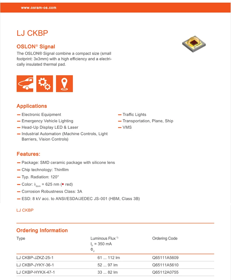 OSLON LJ CKBP светодиодный параметр свойства: