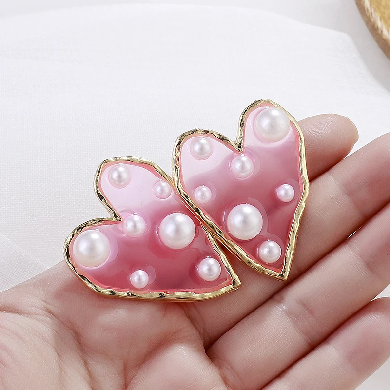 Lifefontier корейские милые серьги из смолы с большим сердцем для женщин сердце из имитации жемчуга Розовые Желтые серьги-подвески ювелирные изделия подарок