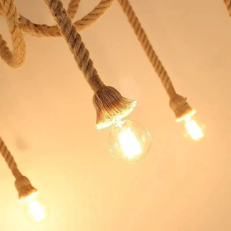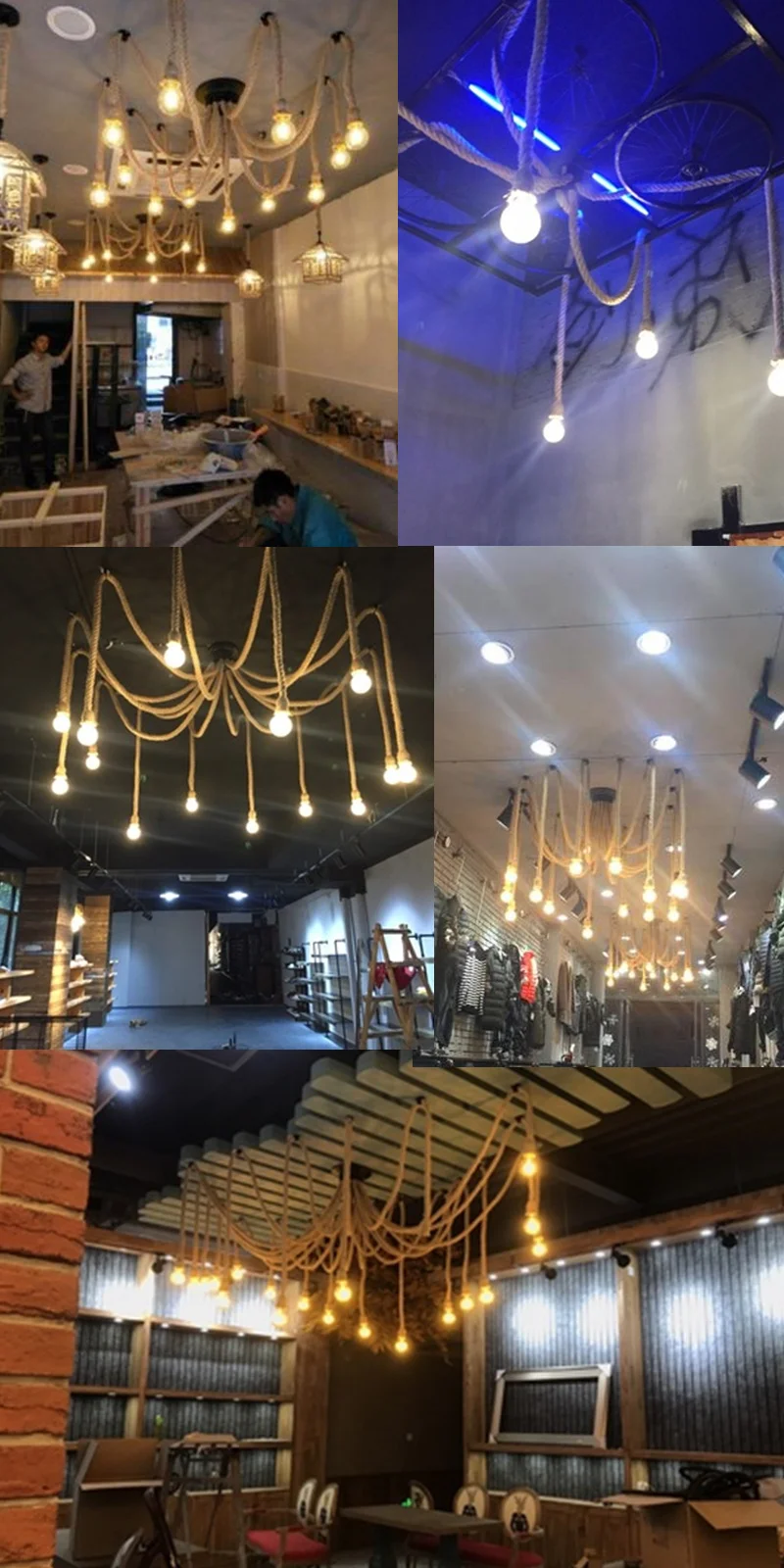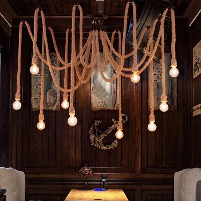 Ретро промышленный подвесной светильник на пеньковом канате, лампа Паук Люстра 5/6/8/10/12/15 головок DIY подвесной светильник для Обеденная бар